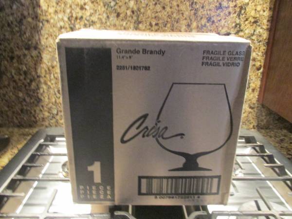 New: Very Large Glass (256 Ounces) Libbey Crisa Brandy Sniffer. This glass will hold 256 ounces to the rim. This is a very heavy glass.
