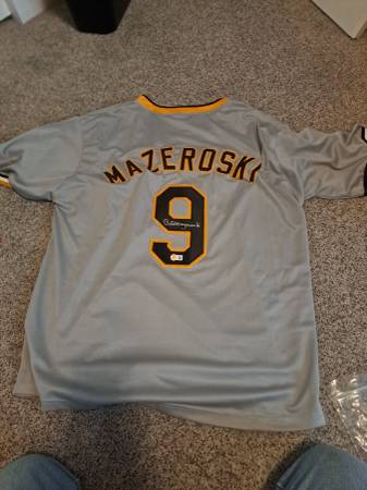 Beckett Authentic - Signed Jersey Bill Mazeroski HOF 100% guaranteed authentic signature, verified via Beckett (BAS) website authentication sticker and number Asking $115 cash only and pick up only....