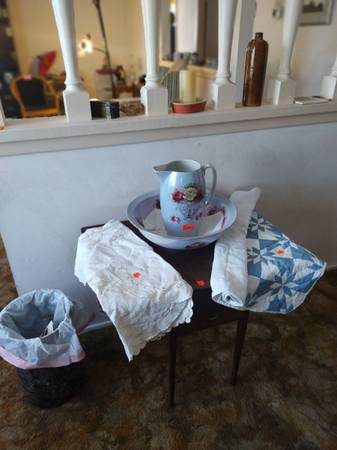 Too cold for garage/estate sale? Not when it's inside the house. Wander around each room to find treasures. Every room in the house holds everything from collectables, books, records, antique dressers, book cases, day bed, hope chests, kitchen ware, TV, TV stand, and much much more.
