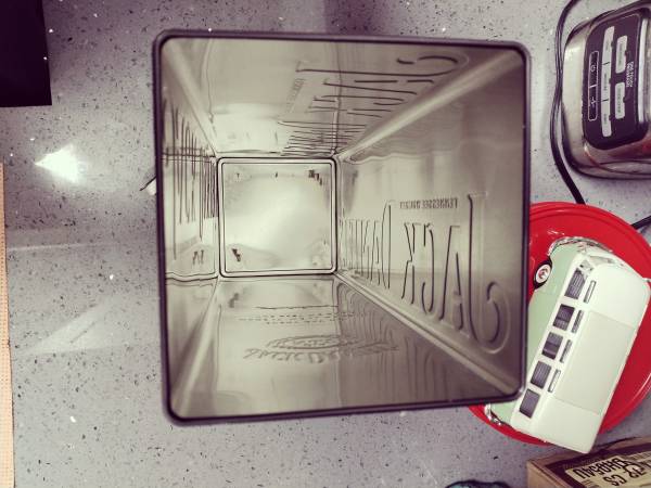 Hello everyone, I have for sale this great looking Jack Daniels Tin Container. This is a really nice looking tin container and can be used around the house or in the garage for a variety of things.. Sugar, Coins, Nuts & Bolts etc. Or simply a decorative piece of art for the shelf or a nice conversation piece. The dimensions are 13Β½" tall x 4ΒΌ" square. Come pick up your Tin Container today and ad that extra fancy touch to your kitchen or garage. $20 cash