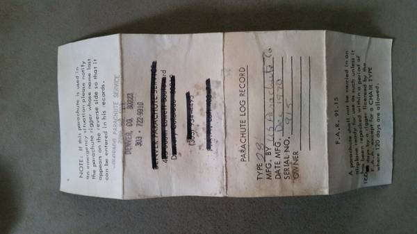 Some pieces of this seatpack may be missing, but it is more complete than the other parachute I have. Uncle Tex probably brought this back with him after Vietnam, where he was a navy aviator. I know nothing about parachutes or jumping out of a perfectly good airplane. Please check this with a rigger before using. Would make a great collector's piece. Actual item shown. Sold as is. No returns.