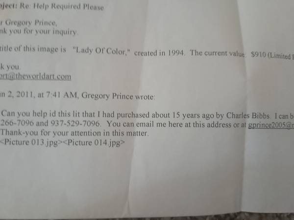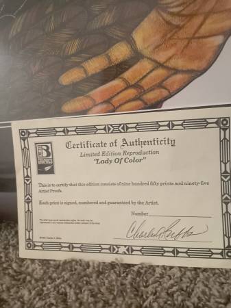 Offering for sale/trade an original signed and numbered lithograph by Charles Bibbs. Perfectly matted/sealed in Las Vegas by an renowned artwork framer ten years ago. Matting/framing alone was over $300! Art has been authenticated by The World of Art of Los Angeles.