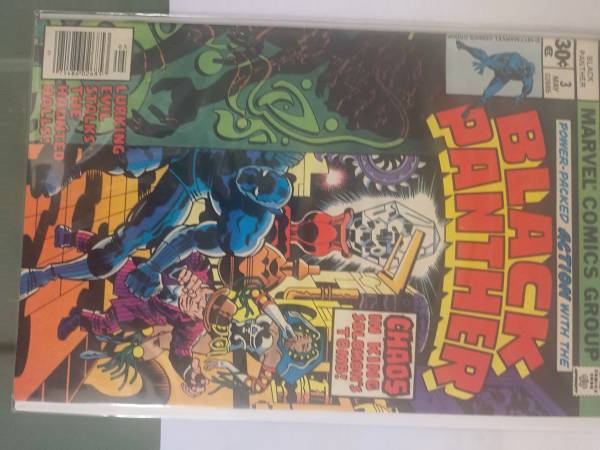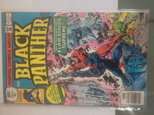 Initial bronze age published comic from Marvel by Stan Lee and Jack Kirby, issues 1 through 7 and 9 to 15 of the Black Panther. All in very good to excellent condition, all bagged and boarded. Special note, issue #15 was the final of the initial/original volume.