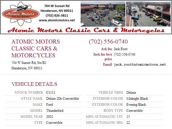 This vehicle is located at Atomic Motors Classic Cars & Motorcycles in Henderson, NV just 20 mins from the fabulous Las Vegas Strip. Come down and see us or call 702-826-3811 ext 2. Additional pictures may be found on our site at www.atomicmotors.net