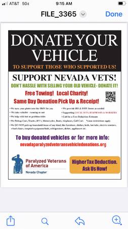 This vehicle was donated to the Nevada paralyzed veterans and it seems to run and drive well.