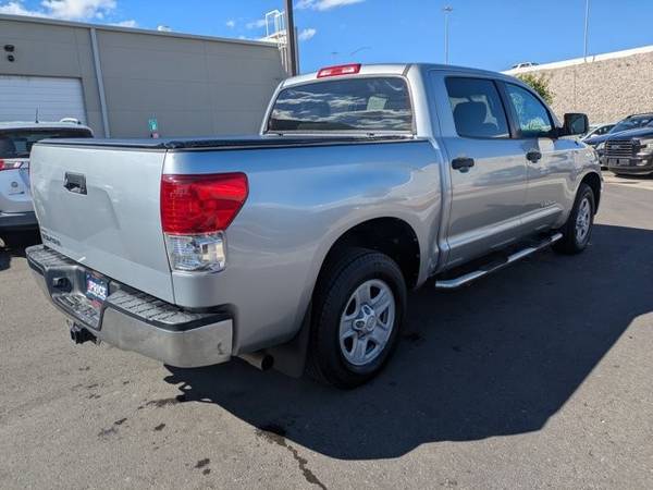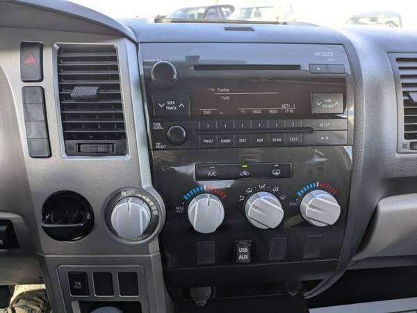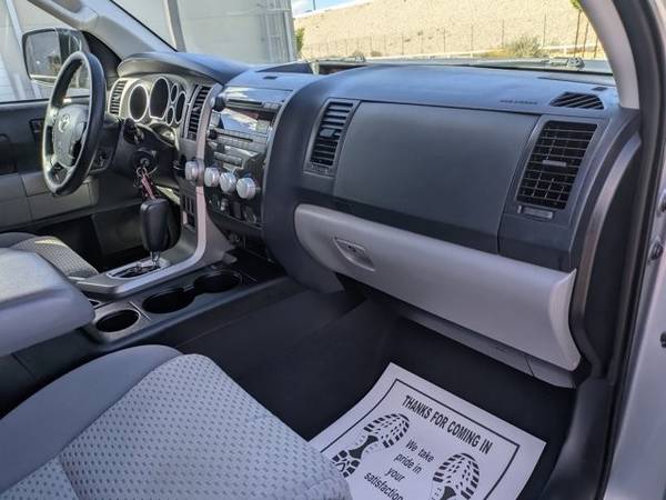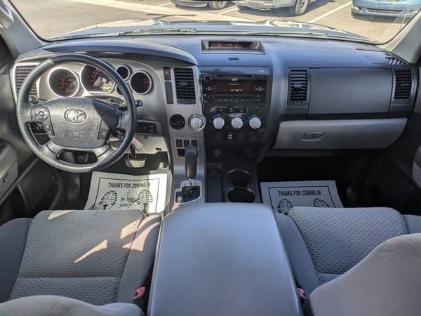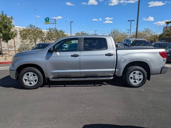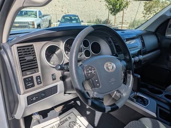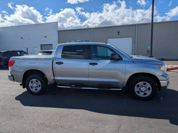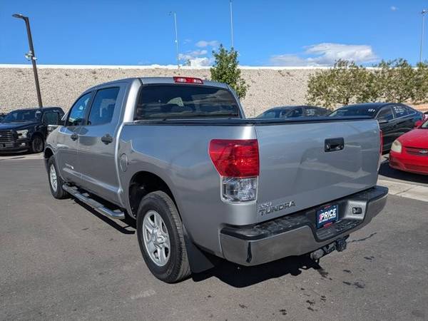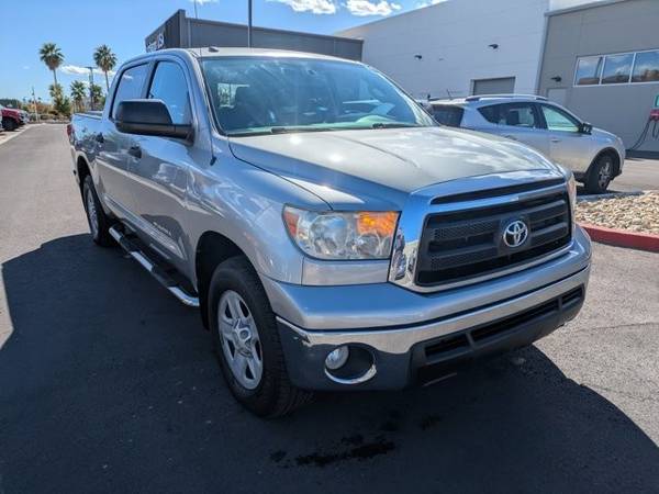 * Tow Pkg * AM/FM Stereo W/CD Player * Auto-Dimming Rearview Mirror W/Back Up Camera Display & Homelink Garage Door Opener * Upgrade Pkg * 50-State Emissions * Graphite; Cloth Trim * Silver Sky MetallicAutoNation USA Centennial is excited to offer this 2013 Toyota Tundra 2WD Truck . This 2013 Toyota Tundra 2WD Truck has such low mileage it has been parked more than driven. Driven by many, but adored by more, the Toyota Tundra 2WD Truck is a perfect addition to any home. This is about the time when you're saying it is too good to be true, and let us be the one's to tell you, it is absolutely true. More information about the 2013 Toyota Tundra 2WD Truck: The 2013 Tundra CrewMax has best-in-class legroom according to Toyota, and offers the only reclining and sliding rear seat among pickups. The Tundra also offers one of the best-designed interiors, with plenty of storage space and easy access to the backseat area. The available 5.7L engine makes 381 horsepower and 401 lb-feet of torque, with hauling and towing ability near the top of the segment. Safety is also a strong selling point, as the Tundra is the first full-size pickup to have stability control, front side airbags, front seat knee airbags and rollover-sensing side-curtain airbags standard across the model line. Strengths of this model include thoughtful interior design, Safety features, towing and hauling ability, and pair of V8 engine options This vehicle includes a Money-Back Guarantee* and has passed our precise inspection process. What does that inspection include? Our Worry Free Folder is in each vehicle and includes the complete inspection, along with the work that was completed to bring the vehicle up to AutoNation standards. A copy of the CarFax has also been included for you. Best of all the price you see is the price you pay. No haggling. No back and forth. No pressure. *Money-Back Guarantee is valid for 5 days or 250 miles, whichever comes first. Subject to certain terms and conditions. See store for details. Some restrictions apply.