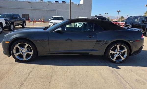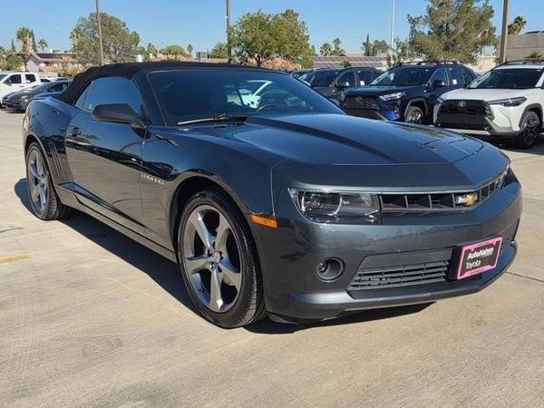 The following items have been reconditioned on this vehicle: new pair of tires! * Rs Package * Transmission; 6-Speed Automatic * Leather Seats * Wheel And Tire; Spare; Compact * Lpo; Cargo Mat * Rear Spoiler * Heads-Up Display * License Plate Bracket; Front * Convertible Soft Top * 2Lt Preferred Equipment Group * Ashen Gray Metallic * Audio System; 7" Diagonal Color Touch Screen Display AM/FM Stereo * Axle; 3.27 Ratio * Black Top * Black; Front Leather Seating Surfaces * Daytime Running Lamps; Separate * Emissions; California State Requirements; 50-State Certified * Engine; 3.6L Sidi Dohc V6 Vvt * Headlamps; High Intensity Discharge * Remote Vehicle Starter System * Seats; Front Sport Bucket * Tires; P245/45R20 Front And P275/40R20 Rear; Blackwall; Summer * Wheels; 20" X 8" (50.8 Cm X 20.3 Cm) Front And 20" X 9" (50.8 Cm X 22.9 Cm) Rear Flangeless; Painted Aluminum With Bright Silver FinishThis vehicle includes a Money-Back Guarantee* and passed our precise inspection process. Best of all the price you see is the price you pay. No haggling. No back and forth. No pressure. And this price is so good it is guaranteed. *Money-Back Guarantee is valid for 5 days or 250 miles, whichever comes first. Subject to certain terms and conditions. See store for details. Some restrictions apply.This outstanding example of a 2014 Chevrolet Camaro LT is offered by AutoNation Toyota Las Vegas. This Chevrolet includes: TRANSMISSION, 6-SPEED AUTOMATIC Transmission w/Dual Shift Mode A/T 6-Speed A/T ENGINE, 3.6L SIDI DOHC V6 VVT V6 Cylinder Engine Gasoline Fuel *Note - For third party subscriptions or services, please contact the dealer for more information.* Let a little sunshine in. Just drop the top of this Chevrolet Camaro convertible and go. It's not often you find just the vehicle you are looking for AND with low mileage. This is your chance to take home a pre-owned and barely driven Chevrolet Camaro. More information about the 2014 Chevrolet Camaro: The Chevrolet Camaro is a modern take on GM's legendary muscle-car, offering strong rear-wheel-drive performance in a low coupe or convertible body style. Relative to the other pony cars like the Ford Mustang or Dodge Challenger, the Camaro performs athletically, although it gives up some outward visibility for the chunky, bold design. The performance standout of the model line remains the Camaro SS Coupe. Camaro Convertibles are a strong value as well and provide a different sort of fun. Some drivers wanting performance approaching that of high-end exotics, the ZL1 provides outrageous horsepower numbers. While pricy among Camaros, it's faster than cars costing two or three times as much. Interesting features of this model are daring design inside and out, muscle-car look and feel, Strong acceleration, great handling, and good highway efficiency
