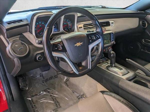 * Rs Package * Transmission; 6-Speed Automatic * Wheels; 20" X 8" (50.8 Cm X 20.3 Cm) Front And 20" X 9" (50.8 Cm X 22.9 Cm) Rear Polished Aluminum * Leather Seats * Audio System With Navigation; 7" Diagonal Color Touch Screen Display AM/FM Stereo With Navigation Display * Navigation System * Wheel And Tire; Spare; Compact * Rear Spoiler * Heads-Up Display * License Plate Bracket; Front * Convertible Soft Top * 2Lt Preferred Equipment Group * Axle; 3.27 Ratio * Black Top * Daytime Running Lamps; Separate * Emissions; California State Requirements; 50-State Certified * Engine; 3.6L Sidi Dohc V6 Vvt * Gray; Front Leather Seating Surfaces * Headlamps; High Intensity Discharge * Red Hot * Remote Vehicle Starter System * Seats; Front Sport Bucket * Tires; P245/45R20 Front And P275/40R20 Rear; Blackwall; SummerAutoNation USA Centennial has a wide selection of exceptional pre-owned vehicles to choose from, including this 2015 Chevrolet Camaro. This Chevrolet includes: DAYTIME RUNNING LAMPS, SEPARATE Daytime Running Lights 2LT PREFERRED EQUIPMENT GROUP ENGINE, 3.6L SIDI DOHC V6 VVT V6 Cylinder Engine Gasoline Fuel TRANSMISSION, 6-SPEED AUTOMATIC Transmission w/Dual Shift Mode A/T 6-Speed A/T GRAY, FRONT LEATHER SEATING SURFACES Leather Seats BLACK TOP AUDIO SYSTEM WITH NAVIGATION, 7 DIAGONAL COLOR TOUCH SCREEN DISPLAY AM/FM STEREO WITH NAVIGATION DISPLAY Navigation System AM/FM Stereo LICENSE PLATE BRACKET, FRONT TIRES, P245/45R20 FRONT AND P275/40R20 REAR, BLACKWALL, SUMMER Tires - Front Performance Tires - Rear Performance RED HOT HEADLAMPS, HIGH INTENSITY DISCHARGE Automatic Headlights HID headlights RS PACKAGE Aluminum Wheels Daytime Running Lights HID headlights SEATS, FRONT SPORT BUCKET Rear Bench Seat Bucket Seats WHEELS, 20 Aluminum Wheels EMISSIONS, CALIFORNIA STATE REQUIREMENTS, 50-STATE CERTIFIED WHEEL AND TIRE, SPARE, COMPACT Temporary Spare Tire REMOTE VEHICLE STARTER SYSTEM Remote Engine Start Power Door Locks Keyless Entry AXLE, 3.27 RATIO *Note - For third party subscriptions or services, please contact the dealer for more information.* Let a little sunshine in. Just drop the top of this Chevrolet Camaro convertible and go. You can tell this 2015 Chevrolet Camaro has been pampered by the fact that it has less than 57,570mi and appears with a showroom shine. Let's be honest, not everyone wants to set a course blindly into the dark. For those of us that don't, there are vehicles like this with stellar navigation systems. Intricately stitched leather and ergonomic design seats are among the details in which test drivers say that Chevrolet Camaro LT is in a league of its own More information about the 2015 Chevrolet Camaro: The Chevrolet Camaro is a modern take on GM's legendary muscle-car, offering strong rear-wheel-drive performance in a low coupe or convertible body style. Relative to the other pony cars like the Ford Mustang or Dodge Challenger, the Camaro performs athletically, although it gives up some outward visibility for the chunky, bold design. The performance standout of the model line remains the Camaro SS Coupe. Camaro Convertibles are a strong value as well and provide a different sort of fun. Some drivers wanting performance approaching that of high-end exotics, will be tempted by the ZL1 which provides outrageous horsepower numbers. While pricy among Camaros, it's faster than cars costing two or three times as much. Interesting features of this model are muscle-car look and feel, Strong acceleration, good highway efficiency, great handling, and daring design inside and out This vehicle includes a Money-Back Guarantee* and has passed our precise inspection process. What does that inspection include? Our Worry Free Folder is in each vehicle and includes the complete inspection, along with the work that was completed to bring the vehicle up to AutoNation standards. A copy of the CarFax has also been included for you. Best of all the price you see is the price you pay. No haggling. No back and forth. No pressure. *Money-Back Guarantee is valid for 5 days or 250 miles, whichever comes first. Subject to certain terms and conditions. See store for details. Some restrictions apply.