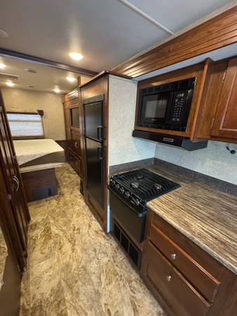 • Full kitchen: double sink, stovetop, microwave, large fridge/freezer