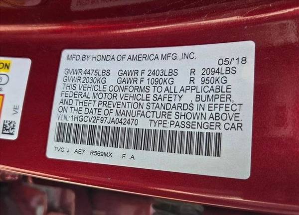 The following items have been reconditioned on this vehicle: new battery! * Moonroof * Leather Seats * Navigation System * Lane Keeping Assist * Keyless Start * Heads-Up Display * Cooled Front Seat(S) * Ivory; Leather-Trimmed Seats * Radiant Red MetallicThis vehicle includes a Money-Back Guarantee* and passed our precise inspection process. Best of all the price you see is the price you pay. No haggling. No back and forth. No pressure. And this price is so good it is guaranteed. *Money-Back Guarantee is valid for 5 days or 250 miles, whichever comes first. Subject to certain terms and conditions. See store for details. Some restrictions apply.This outstanding example of a 2018 Honda Accord Sedan Touring 2.0T is offered by AutoNation Toyota Las Vegas. You've found the one you've been looking for. Your dream car. The Honda Accord Sedan Touring 2.0T will provide you with everything you have always wanted in a car -- Quality, Reliability, and Character. The look is unmistakably Honda, the smooth contours and cutting-edge technology of this Honda Accord Sedan Touring 2.0T will definitely turn heads. The quintessential Honda -- This Honda Accord Sedan Touring 2.0T speaks volumes about its owner, about uncompromising individuality, a passion for driving and standards far above the ordinary.