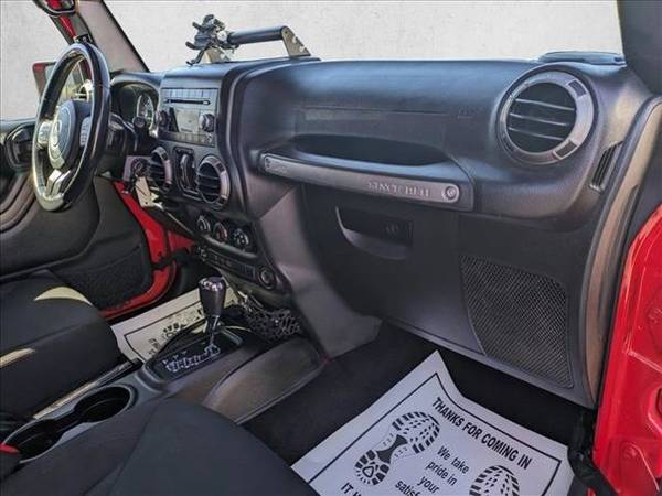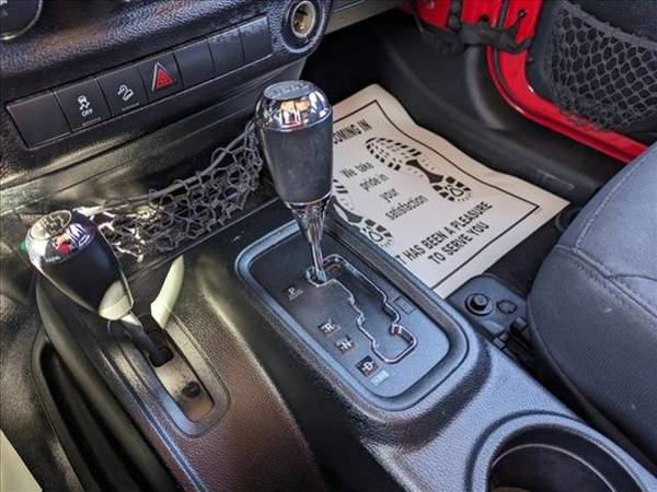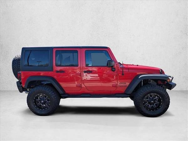 * Transmission: 5-Speed Automatic (W5A580) * Black 3-Piece Hard Top * Supplemental Front Seat Side Air Bags * Tubular Side Steps * Convertible Hardtop * 3.21 Rear Axle Ratio * Black; Cloth Seats W/Adjustable Head Restraints * Engine: 3.6L V6 24V Vvt * Firecracker Red Clearcoat * Normal Duty Suspension * Tires: P255/75R17 Owl On/Off RoadThank you for visiting another one of AutoNation USA Centennial's online listings! Please continue for more information on this 2018 Jeep Wrangler JK Unlimited Sport S with 61,817mi. This Jeep includes: SUPPLEMENTAL FRONT SEAT SIDE AIR BAGS Front Side Air Bag ENGINE: 3.6L V6 24V VVT (STD) V6 Cylinder Engine Gasoline Fuel *Note - For third party subscriptions or services, please contact the dealer for more information.* The Wrangler JK Unlimited Sport S doesn't disappoint, and comes with all the quality and understated opulence buyers have come to expect from the respected Jeep marque. A truly versatile SUV, this vehicle will please even the most discerning of buyers. This 4WD-equipped vehicle will handle beautifully on any terrain and in any weather condition your may find yourself in. The benefits of driving a 4 wheel drive vehicle, such as this Jeep Wrangler JK Unlimited Sport S, include superior traction and stability. Low, low mileage coupled with an exacting maintenance program make this vehicle a rare find. This vehicle includes a Money-Back Guarantee* and has passed our precise inspection process. What does that inspection include? Our Worry Free Folder is in each vehicle and includes the complete inspection, along with the work that was completed to bring the vehicle up to AutoNation standards. A copy of the CarFax has also been included for you. Best of all the price you see is the price you pay. No haggling. No back and forth. No pressure. *Money-Back Guarantee is valid for 5 days or 250 miles, whichever comes first. Subject to certain terms and conditions. See store for details. Some restrictions apply.