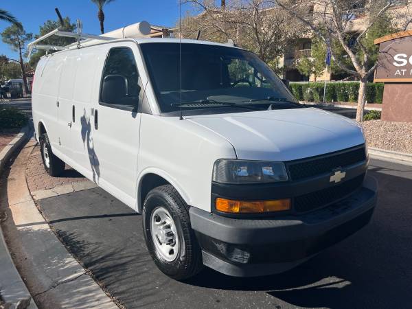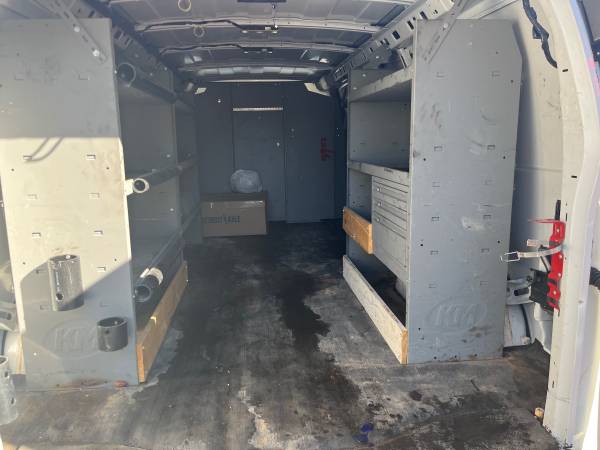 1 owner, fleet owned, and well-maintained van,  very clean inside and outside, fully loaded with  vinyl buckets back up camera XM radio, power windows, power locks with remotes, rear  shelves ac dc converter ext