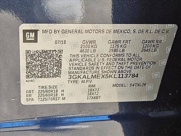 The following items have been reconditioned on this vehicle: all new tires and new battery! * Engine; 2.0L Turbo; 4-Cylinder; Sidi; Vvt * Driver Convenience Package * Blue Steel Metallic * Driver Alert Package I * Liftgate; Rear Power Programmable * Wheels; 18" X 7" (45.7 Cm X 17.8 Cm) Silver Painted Aluminum * Keyless Start * Air Conditioning; Dual-Zone Automatic Climate Control * Audio System; 7" Diagonal Gmc Infotainment System * Axle; 3.17 Final Drive Ratio * Brakes; 4-Wheel Antilock; 4-Wheel Disc; 12.6" Front And 11.3" Rear * Emissions; Federal Requirements * Exhaust; Dual With Bright Tips * Lane Change Alert With Side Blind Zone Alert * Luggage Rack; Side Rails; Roof-Mounted * Medium Ash Gray/Jet Black; Premium Cloth Seat Trim * Mirrors; Outside Heated Power-Adjustable; Manual-Folding With Led Turn Signal Indicators * Rear Cross Traffic Alert * Rear Park Assist * Remote Start * Safety Alert Seat * Seat; Driver 8-Way Power With 2-Way Power Lumbar * Seat; Power Driver Lumbar Control * Seats; Front Bucket * Seats; Heated Driver And Front Passenger * Sle Preferred Equipment Group * Tire; Spare; T125/70R17 Blackwall * Tires; P225/60R18 All-Season Blackwall * Transmission; 9-Speed Automatic 9T50; Electronically-Controlled With Overdrive * Wheel; Spare; 17" (43.2 Cm) SteelThis vehicle includes a Money-Back Guarantee* and passed our precise inspection process. Best of all the price you see is the price you pay. No haggling. No back and forth. No pressure. And this price is so good it is guaranteed. *Money-Back Guarantee is valid for 5 days or 250 miles, whichever comes first. Subject to certain terms and conditions. See store for details. Some restrictions apply.Check out this pre-owned 2019 GMC Terrain we recently got in. This GMC includes: ENGINE, 2.0L TURBO, 4-CYLINDER, SIDI, VVT 4 Cylinder Engine Gasoline Fuel Turbocharged *Note - For third party subscriptions or services, please contact the dealer for more information.* Off-road or on the street, this GMC Terrain SLE handles with ease. This is about the time when you're saying it is too good to be true, and let us be the one's to tell you, it is absolutely true. This is the one. Just what you've been looking for.