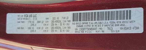 The following items have been reconditioned on this vehicle: new brakes! * Limited Level 1 Equipment Group * Wheels: 22" X 9" Polish/Painted W/Inserts * Dual-Pane Panoramic Sunroof * Engine: 5.7L V8 Hemi Mds Vvt * Panoramic Roof * Leather Seats * Anti-Spin Differential Rear Axle * Navigation System * 33 Gallon Fuel Tank * Body Color Bumper Group * Delmonico Red Pearlcoat * 3.92 Rear Axle Ratio * Engine Block Heater * Lane Keeping Assist * Keyless Start * Cooled Front Seat(S) * Black; Premium Leather Trimmed Bucket Seats * Gvwr: 7;100 Lbs * Tires: 285/45R22Xl Bsw All Season * Transmission: 8-Speed Automatic (8Hp75)This vehicle includes a Money-Back Guarantee* and passed our precise inspection process. Best of all the price you see is the price you pay. No haggling. No back and forth. No pressure. And this price is so good it is guaranteed. *Money-Back Guarantee is valid for 5 days or 250 miles, whichever comes first. Subject to certain terms and conditions. See store for details. Some restrictions apply.This 2019 Ram 1500 Limited is proudly offered by AutoNation Toyota Las Vegas This Ram includes: ENGINE: 5.7L V8 HEMI MDS VVT Gas/Electric Hybrid 8 Cylinder Engine *Note - For third party subscriptions or services, please contact the dealer for more information.* Sophistication & understated luxury comes standard on this Ram 1500 Limited. Well-known by many, the 1500 has become a household name in the realm of quality and prestige. No matter the terrain or weather, you'll drive at ease in this 4WD-equipped vehicle. With exceptional safety features and superb handling, this 4WD was engineered with excellence in mind. This is the one. Just what you've been looking for.