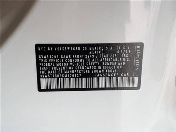 * Gli Monster Mats W/Logo (Set Of 4) * Keyless Start * Rear Spoiler * First Aid Kit * Pure White W/Black Roof * Titan Black W/Red; Cloth Seating SurfacesLooking for a clean, well-cared for 2019 Volkswagen Jetta GLI? This is it. This Volkswagen includes: GLI MONSTER MATS W/LOGO (SET OF 4) TITAN BLACK W/RED, CLOTH SEATING SURFACES Cloth Seats FIRST AID KIT *Note - For third party subscriptions or services, please contact the dealer for more information.* You could spend more on fuel each month than on your vehicle payments, so why not consider one with exceptional fuel economy like this 2019 Volkswagen Jetta GLI. The Jetta GLI S has been lightly driven and there is little to no wear and tear on this vehicle. The care taken on this pre-owned vehicle is reflective of the 56,689mi put on this Volkswagen. You could keep looking, but why? You've found the perfect vehicle right here. This vehicle includes a Money-Back Guarantee* and has passed our precise inspection process. What does that inspection include? Our Worry Free Folder is in each vehicle and includes the complete inspection, along with the work that was completed to bring the vehicle up to AutoNation standards. A copy of the CarFax has also been included for you. Best of all the price you see is the price you pay. No haggling. No back and forth. No pressure. *Money-Back Guarantee is valid for 5 days or 250 miles, whichever comes first. Subject to certain terms and conditions. See store for details. Some restrictions apply.