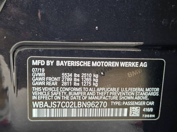 * Executive Package * Wheels: 20" X 8" Fr & 20" X 9" Rr M Double-Spoke * Parking Assistance Package * Power Rear Sunshade * Sun/Moonroof * Leather Seats * Navigation System * Front & Rear Heated Seats * Heated Steering Wheel * Keyless Start * Rear Spoiler * Heads-Up Display * Black; Dakota Leather Upholstery * Carbon Black Metallic * Gray Poplar Wood TrimThis vehicle includes a Money-Back Guarantee* and passed our precise inspection process. Best of all the price you see is the price you pay. No haggling. No back and forth. No pressure. And this price is so good it is guaranteed.2020BMW5 Series PARKING ASSISTANCE PACKAGE Automatic Parking Back-Up Camera GRAY POPLAR WOOD TRIM Woodgrain Interior Trim WHEELS: 20 Tires - Front Performance Aluminum Wheels Tires - Rear Performance FRONT & REAR HEATED SEATS Heated Rear Seat(s) Heated Front Seat(s) HEATED STEERING WHEEL Heated Steering Wheel BLACK, DAKOTA LEATHER UPHOLSTERY Leather Seats EXECUTIVE PACKAGE Bluetooth Connection Heads-Up Display MP3 Capability *Note - For third party subscriptions or services, please contact the dealer for more information.**Money-Back Guarantee is valid for 5 days or 250 miles, whichever comes first. Subject to certain terms and conditions. See store for details. Some restrictions apply.