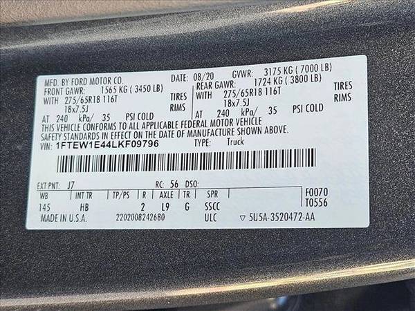 * Lariat Sport Appearance Package * Engine: 3.5L V6 Ecoboost * Equipment Group 501A Mid * Max Trailer Tow Package * Fx4 Off-Road Package * Voice-Activated Touchscreen Navigation * Black; Leather-Trimmed Bucket Seats * Leather Seats * Navigation System * Electronic Locking W/3.55 Axle Ratio * Extended Range 36 Gallon Fuel Tank * Tailgate Step W/Tailgate Lift Assist * Integrated Trailer Brake Controller * Reverse Sensing System * 110V/400W Outlet * Tray Style Floor Liner * Lane Keeping Assist * Keyless Start * Cooled Front Seat(S) * California Emissions System * Front License Plate Bracket * Magnetic Metallic * Transmission: Electronic 10-Speed AutomaticThis vehicle includes a Money-Back Guarantee* and passed our precise inspection process. Best of all the price you see is the price you pay. No haggling. No back and forth. No pressure. And this price is so good it is guaranteed. *Money-Back Guarantee is valid for 5 days or 250 miles, whichever comes first. Subject to certain terms and conditions. See store for details. Some restrictions apply.AutoNation USA Henderson has a wide selection of exceptional pre-owned vehicles to choose from, including this 2020 Ford F-150. This Ford F-150 LARIAT's level of quality is not meant for just anyone. It's meant for the person who strives for a classy, comfortable, and luxurious car. Simply put, this Four Wheel Drive is engineered with higher standards. Enjoy improved traction and safety while driving this 4WD Ford F-150 LARIAT. This 2020 Ford F-150 has such low mileage it has been parked more than driven. Just what you've been looking for. With quality in mind, this vehicle is the perfect addition to take home.
