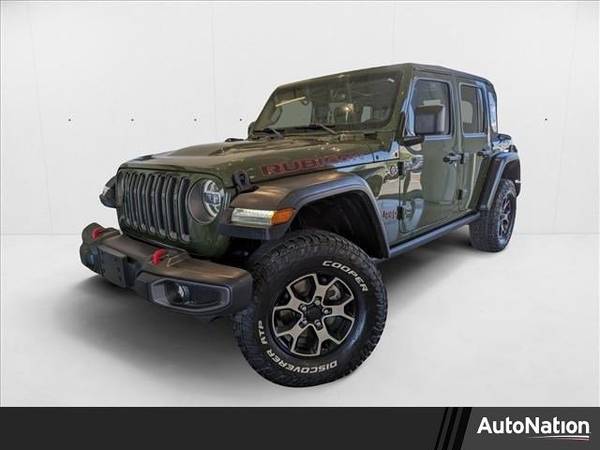 The following items have been reconditioned on this vehicle: new brakes! * Transmission: 8-Speed Automatic (850Re) * 8.4" Radio & Premium Audio Group * Alpine Premium Audio System * Black 3-Piece Hard Top * Led Lighting Group * Trailer Tow & Hd Electrical Group * Remote Proximity Keyless Entry * Remote Start System * Navigation System * Keyless Start * Convertible Hardtop * 4.10 Rear Axle Ratio * Black; Premium Cloth Low-Back Bucket Seats * Engine: 3.6L V6 24V Vvt Upg I W/Ess * Front License Plate Bracket * Gvwr: 5;800 Lbs * Radio: Uconnect 4C Nav W/8.4" Display * Sarge Green Clearcoat * Tires: Lt285/70R17C Bsw Off-Road * Wheels: 17" X 7.5" Machined W/Black Pockets2020JeepWrangler Unlimited This Jeep includes: BLACK, PREMIUM CLOTH LOW-BACK BUCKET SEATS Cloth Seats Bucket Seats REMOTE START SYSTEM Remote Engine Start LED LIGHTING GROUP Fog Lamps Daytime Running Lights TRANSMISSION: 8-SPEED AUTOMATIC (850RE) 8-Speed A/T Transmission w/Dual Shift Mode A/T ENGINE: 3.6L V6 24V VVT UPG V6 Cylinder Engine Gasoline Fuel 8.4 RADIO WiFi Hotspot HD Radio Navigation System Auto-Dimming Rearview Mirror AM/FM Stereo Satellite Radio Bluetooth Connection Premium Sound System Telematics Requires Subscription TRAILER TOW Tow Hitch SARGE GREEN CLEARCOAT BLACK 3-PIECE HARD TOP Targa Roof Rear Defrost Convertible Hardtop REMOTE PROXIMITY KEYLESS ENTRY Keyless Start Power Door Locks Keyless Entry *Note - For third party subscriptions or services, please contact the dealer for more information.* Why does this vehicle look so great? The CARFAX report shows it's only been owned by one owner. This SUV gives you versatility, style and comfort all in one vehicle. Indulge yourself with one of the most highly crafted, most luxurious automobiles available today. This vehicle comes with 4WD for better traction on unstable surfaces, like snow and dirt to give you the edge over anything you might encounter on the road. This vehicle comes with a navigation system. That doesn't mean you won't get lost. But it does mean you won't stay lost. Adjectives like impeccable, spotless, and immaculate can be used to describe how clean this Jeep Wrangler Unlimited Rubicon is, causing it to feel more like a new vehicle than a pre-owned one. You will never have to worry about keeping up with traffic in this Jeep Wrangler Unlimited Rubicon as it packs a beast under the hood. This impeccably built Jeep Wrangler Unlimited Rubicon comes with a plethora of added features that have made this vehicle a unique find. These options will simply amplify the experience of owning and driving this wonderfully crafted Jeep. The paint and body on this Jeep Wrangler Unlimited Rubicon looks as fresh as the day it rolled off the assembly line. A unique vintage vehicle that exudes taste and sophistication. This vehicle includes a Money-Back Guarantee* and has passed our precise inspection process. What does that inspection include? Our Worry Free Folder is in each vehicle and includes the complete inspection, along with the work that was completed to bring the vehicle up to AutoNation standards. A copy of the CarFax has also been included for you. Best of all the price you see is the price you pay. No haggling. No back and forth. No pressure. *Money-Back Guarantee is valid for 5 days or 250 miles, whichever comes first. Subject to certain terms and conditions. See store for details. Some restrictions apply.