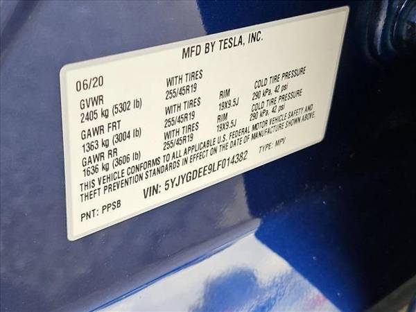 * Deep Blue Metallic * Panoramic Roof * Navigation System * Lane Keeping Assist * Keyless Start * White/Black; Premium Seat TrimThis vehicle includes a Money-Back Guarantee* and passed our precise inspection process. Best of all the price you see is the price you pay. No haggling. No back and forth. No pressure. And this price is so good it is guaranteed.2020TeslaModel Y The Tesla Model Y is the benchmark all other SUVs strive to meet. With exceptional power, towing and handling, this SUV can handle anything thrown at it. Quality and prestige abound with this Tesla Model Y Long Range. Comfort. Performance. Safety. Enjoy all three with this well-appointed AWD 2020 Tesla. In addition to being well-cared for, this Tesla Model Y has very low mileage making it a rare find. Drive any city's streets like you've lived there all your life using the navigation system on this Tesla Model Y.*Money-Back Guarantee is valid for 5 days or 250 miles, whichever comes first. Subject to certain terms and conditions. See store for details. Some restrictions apply. *Sanitization claims are valid for all vegetative, non-spore forming bacteria. Efficacy claims for Clorox Total 360 Disinfectant Cleaner per Federal EPA-approved master label and when product used as directed. (c) 2019 Clorox Professional Products Company.