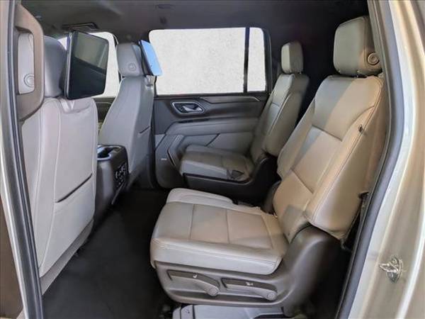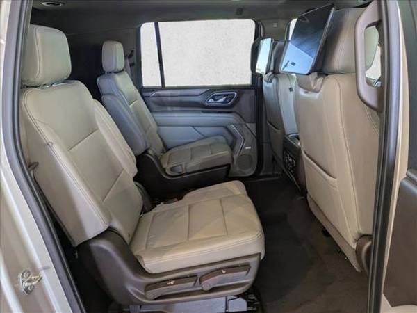 * Luxury Package * Rear Media And Nav Package * Wheels; 20" X 9" (50.8 Cm X 22.9 Cm) Painted Aluminum With Machine Face And Argent Metallic Pockets * Max Trailering Package * Leather Seats * Navigation System * 3rd Row Seat * Seats; Second Row Bucket; Power Release * Lpo; All-Weather Floor Mats * Lane Keeping Assist * Keyless Start * Advanced Trailering Package * Advanced Trailering System * Audio System; Chevrolet Infotainment 3 Premium System With Connected Navigation; 10.2" Diagonal Hd Color Touchscreen * Cooling System; Extra Capacity * Driver Alert Package * Emissions Override; Federal * Emissions; California State Requirements * Empire Beige Metallic * Engine; 5.3L Ecotec3 V8 * Front And Rear Park Assist * Gideon/Very Dark Atmosphere; Leather Seating Surfaces 1St And 2Nd Row * Hd Surround Vision * Hitch Guidance With Hitch View * Lane Change Alert With Side Blind Zone Alert * Lane Keep Assist * Lt Preferred Equipment Group * Memory Settings; Recalls 2 "Driver" Presets For Power Driver Seat; Outside Rearview Mirrors And Power And Tilt And Telescopic Steering Column * Mirrors; Outside Heated Power-Adjustable; Power-Folding; Driver-Side Auto-Dimming * Rear Axle; 3.23 Ratio * Rear Cross Traffic Alert * Rear Pedestrian Alert * Rear Seat Media System * Seats; Front Bucket * Seats; Heated Second Row Outboard Seats * Seats; Third Row 60/40 Split-Bench; Power Folding * Steering Column; Power Tilt And Telescopic * Steering Wheel; Heated; Automatic * Tires; 275/60R20Sl All-Season; Blackwall * Trailer Brake Controller; Integrated * Transfer Case; Active; 2-Speed Electronic Autotrac * Transmission; 10-Speed AutomaticAutoNation USA Centennial is honored to present a wonderful example of pure vehicle design... this 2021 Chevrolet Suburban LT only has 111,205mi on it and could potentially be the vehicle of your dreams! This Chevrolet includes: GIDEON/VERY DARK ATMOSPHERE, LEATHER SEATING SURFACES 1ST AND 2ND ROW Leather Seats REAR MEDIA AND NAV PACKAGE Navigation System Bluetooth Connection Auxiliary Audio Input MP3 Capability ENGINE, 5.3L ECOTEC3 V8 8 Cylinder Engine Gasoline Fuel TRANSMISSION, 10-SPEED AUTOMATIC A/T 10-Speed A/T LUXURY PACKAGE Heated Rear Seat(s) Integrated Turn Signal Mirrors 3rd Row Seat Power Mirror(s) Heated Steering Wheel Back-Up Camera Heated Mirrors Rear Bench Seat Adjustable Steering Wheel Power Folding Mirrors Pass-Through Rear Seat WHEELS, 20 Aluminum Wheels EMPIRE BEIGE METALLIC AUDIO SYSTEM, CHEVROLET INFOTAINMENT 3 PLUS SYSTEM, 10.2 DIAGONAL HD COLOR TOUCHSCREEN AM/FM Smart Device Integration AM/FM Stereo Bluetooth Connection Auxiliary Audio Input MP3 Capability *Note - For third party subscriptions or services, please contact the dealer for more information.* Do so much more with one vehicle. This Chevrolet Suburban gives you everything you need an automobile to be. Opulent refinements married with exceptional engineering make this the kind of car you'll want to own for a lifetime. With 4WD, you can take this 2021 Chevrolet Suburban LT to places roads don't go. It's all about the adventure and getting the most enjoyment out of your new ride. Added comfort with contemporary style is the leather interior to heighten the quality and craftsmanship for the Chevrolet Suburban LT. Drive any city's streets like you've lived there all your life using the navigation system on this Chevrolet Suburban. Rest assured, this vehicle was well care for. In fact, previous service records are included. This Chevrolet Suburban is beautiful and the interior is clean with virtually no flaws. If you're looking for world-class speed, acceleration, cornering and handling, don't blink because you'll miss this truly amazing automobile. Treat yourself to a wonderful driving experience in this wel- optioned Chevrolet Suburban LT. Equipped with the latest in driver comforts, this Chevrolet is the benchmark of modern automotive engineering. An outstanding paint finish rounds out the wonderful aspects of this car. This is one of those rare vehicles that comes along for just a brief moment. This Chevrolet is equipped with some of the most amazing wheels the market has to offer! Once you take this Chevrolet Suburban LT for a test drive, you'll instantly realize how much of an added bonus this vehicle's upgraded wheels provide. This vehicle includes a Money-Back Guarantee* and has passed our precise inspection process. What does that inspection include? Our Worry Free Folder is in each vehicle and includes the complete inspection, along with the work that was completed to bring the vehicle up to AutoNation standards. A copy of the CarFax has also been included for you. Best of all the price you see is the price you pay. No haggling. No back and forth. No pressure. *Money-Back Guarantee is valid for 5 days or 250 miles, whichever comes first. Subject to certain terms and conditions. See store for details. Some restrictions apply.