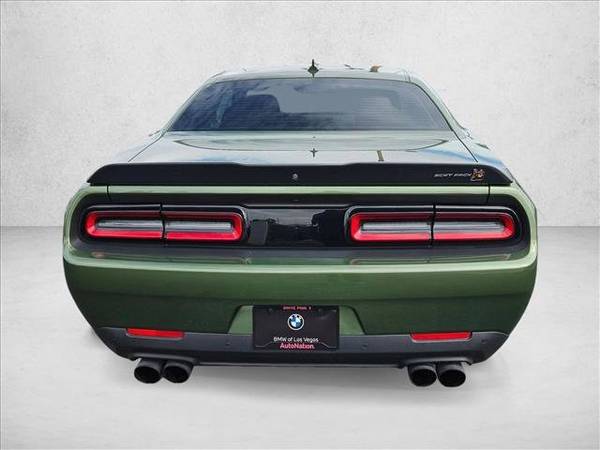* Alpine Audio Group W/Subwoofer * Locking Lug Nuts * Keyless Start * Rear Spoiler * Black; Scat Pack Logo Houndstooth Seat * Engine: 6.4L V8 Srt Hemi * F8 Green * Front License Plate Bracket * Tires: 245/45Zr20 As Performance * Transmission: 6-Speed Manual Tremec * Wheels: 20" X 9" Lo Gloss Granite CrystalThis vehicle includes a Money-Back Guarantee* and passed our precise inspection process. Best of all the price you see is the price you pay. No haggling. No back and forth. No pressure. And this price is so good it is guaranteed.MANUAL TRANSMISSION!!! Contact BMW of Las Vegas today for information on dozens of vehicles like this 2021 Dodge Challenger R/T Scat Pack. There's a level of quality and refinement in this Dodge Challenger R/T Scat Pack that you won't find in your average vehicle. The Challenger R/T Scat Pack is well maintained and has just 34,252mi. This low amount of miles makes this vehicle incomparable to the competition. If you are looking for a pre-owned vehicle that looks brand-new, look no further than this F8 Green Dodge Challenger. Speed is a game changer and this awesome machine is so fast it didn't just change the game, it rewrote all of the rules.*Money-Back Guarantee is valid for 5 days or 250 miles, whichever comes first. Subject to certain terms and conditions. See store for details. Some restrictions apply.