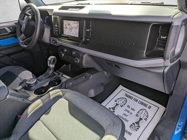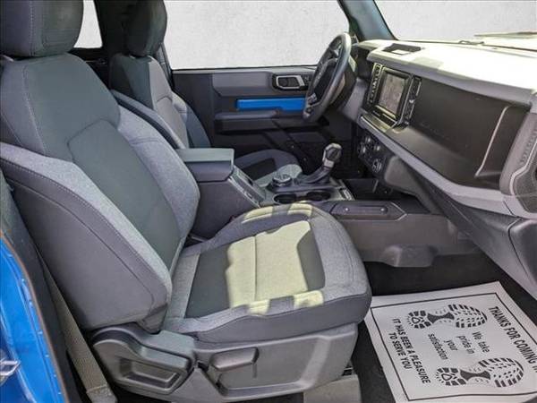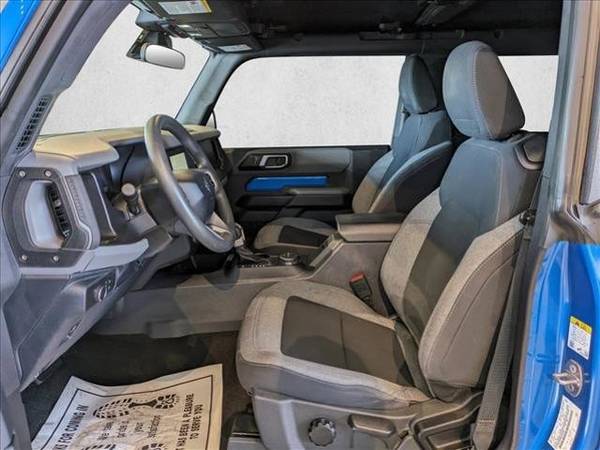 * Engine: 2.7L Ecoboost V6 * Transmission: 10-Speed Automatic * Keyless Entry Keypad * Keyless Start * Dark Gray W/Black Onyx; Cloth Bucket Seats * Equipment Group 101A Standard Package * Front License Plate Bracket * Velocity Blue MetallicYou can find this 2021 Ford Bronco Base and many others like it at AutoNation USA Centennial. This Ford includes: ENGINE: 2.7L ECOBOOST V6 4-Wheel Disc Brakes Traction Control V6 Cylinder Engine ABS Gasoline Fuel Turbocharged Stability Control *Note - For third party subscriptions or services, please contact the dealer for more information.* Treat yourself to an SUV that surrounds you with all the comfort and conveniences of a luxury sedan. Handle any terrain with ease thanks to this grippy 4WD. Whether you're on a slick pavement or exploring the back country, you'll be able to do it with confidence. The Bronco Base has been lightly driven and there is little to no wear and tear on this vehicle. The care taken on this pre-owned vehicle is reflective of the 58,037mi put on this Ford. This vehicle includes a Money-Back Guarantee* and has passed our precise inspection process. What does that inspection include? Our Worry Free Folder is in each vehicle and includes the complete inspection, along with the work that was completed to bring the vehicle up to AutoNation standards. A copy of the CarFax has also been included for you. Best of all the price you see is the price you pay. No haggling. No back and forth. No pressure. *Money-Back Guarantee is valid for 5 days or 250 miles, whichever comes first. Subject to certain terms and conditions. See store for details. Some restrictions apply.