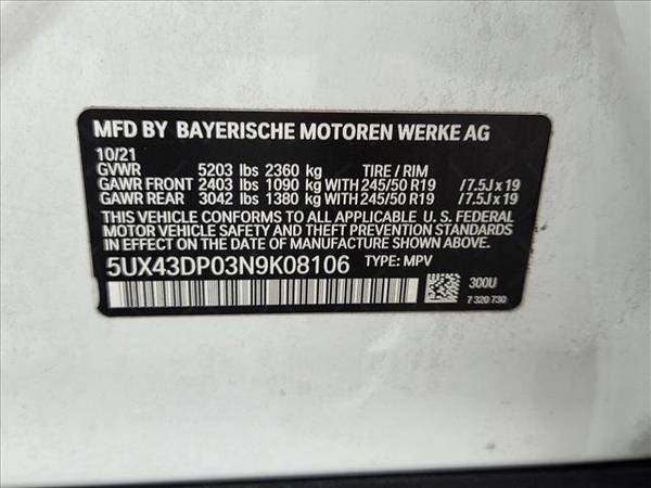 * Premium Package * Panoramic Moonroof * Live Cockpit Pro W/Navigation * Comfort Access Keyless Entry * Panoramic Roof * Heated Front Seats * Navigation System * Heated Steering Wheel * Space-Saver Spare * Keyless Start * Rear Spoiler * Heads-Up Display * Alpine White * Tacora Red; Perforated Sensatec Upholstery * Wheels: 19" X 7.5" Y-Spoke (Style 693)Audi Las Vegas is pleased to be currently offering this 2022 BMW X3 sDrive30i with 54,162mi. This BMW includes: COMFORT ACCESS KEYLESS ENTRY w/3AC Keyless Start Hands-Free Liftgate Power Door Locks Keyless Entry Remote Trunk Release LIVE COCKPIT PRO W/NAVIGATION Navigation System Hard Disk Drive Media Storage MP3 Capability TACORA RED, PERFORATED SENSATEC UPHOLSTERY Vinyl Seats Cloth Seats Leather Seats Premium Synthetic Seats HEATED FRONT SEATS Heated Front Seat(s) HEATED STEERING WHEEL Heated Steering Wheel PANORAMIC MOONROOF Panoramic Roof Generic Sun/Moonroof Sun/Moonroof PREMIUM PACKAGE Keyless Start Panoramic Roof Heated Steering Wheel Hands-Free Liftgate Generic Sun/Moonroof Heated Front Seat(s) Power Door Locks Keyless Entry Passenger Adjustable Lumbar Heads-Up Display Sun/Moonroof Driver Adjustable Lumbar Remote Trunk Release WHEELS: 19 Aluminum Wheels *Note - For third party subscriptions or services, please contact the dealer for more information.* The BMW X3 is the benchmark all other SUVs strive to meet. With exceptional power, towing and handling, this SUV can handle anything thrown at it. There's a level of quality and refinement in this BMW X3 sDrive30i that you won't find in your average vehicle. Performance, ease of use and efficiency are just a few reasons you'll love the navigation system that comes with this car. Intricately stitched leather and ergonomic design seats are among the details in which test drivers say that BMW X3 sDrive30i is in a league of its own