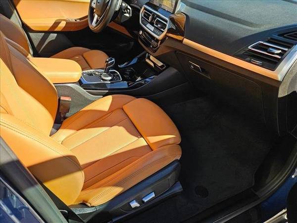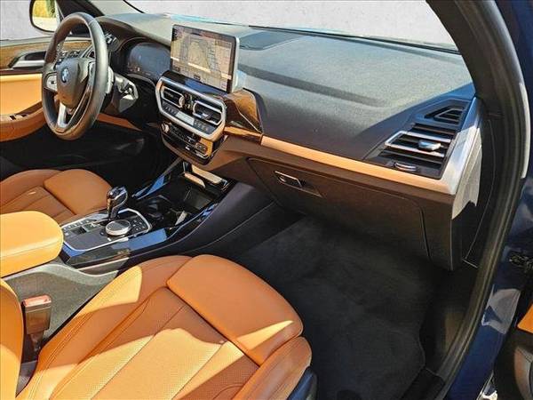 * Premium Package * Panoramic Moonroof * Live Cockpit Pro W/Navigation * Comfort Access Keyless Entry * Panoramic Roof * Phytonic Blue Metallic * Heated Front Seats * Navigation System * Remote Engine Start * Heated Steering Wheel * Keyless Start * Rear Spoiler * Heads-Up Display * Cognac; Perforated Sensatec Upholstery * Wheels: 19" Bi-Color Jet Black (Style 842)This vehicle includes a Money-Back Guarantee* and passed our precise inspection process. Best of all the price you see is the price you pay. No haggling. No back and forth. No pressure. And this price is so good it is guaranteed.This outstanding example of a 2022 BMW X3 xDrive30i is offered by BMW of Las Vegas. This BMW includes: HEATED STEERING WHEEL Heated Steering Wheel HEATED FRONT SEATS Heated Front Seat(s) PHYTONIC BLUE METALLIC COMFORT ACCESS KEYLESS ENTRY w/3AC Keyless Start Hands-Free Liftgate Power Door Locks Keyless Entry Remote Trunk Release REMOTE ENGINE START Remote Engine Start COGNAC, PERFORATED SENSATEC UPHOLSTERY Vinyl Seats Cloth Seats Leather Seats Premium Synthetic Seats WHEELS: 19 BI-COLOR JET BLACK (STYLE 842) (DISC) PANORAMIC MOONROOF Panoramic Roof Generic Sun/Moonroof Sun/Moonroof PREMIUM PACKAGE Keyless Start Panoramic Roof Heated Steering Wheel Hands-Free Liftgate Generic Sun/Moonroof Heated Front Seat(s) Power Door Locks Keyless Entry Passenger Adjustable Lumbar Heads-Up Display Sun/Moonroof Driver Adjustable Lumbar Remote Trunk Release LIVE COCKPIT PRO W/NAVIGATION Navigation System Hard Disk Drive Media Storage MP3 Capability *Note - For third party subscriptions or services, please contact the dealer for more information.* Perfect for the on-the-go family, this BMW X3 xDrive30i is an SUV everyone will love. With exceptional mileage, options and power, you'll insist on driving it on all your outings. Excellence, luxury and stature are just a few of the pillars this car is built upon. All-wheel drive means peace of mind all the time. This Phytonic Blue Metallic AWD BMW enjoys a host offeatures, including exceptional acceleration and superior stability so you can drive with confidence. Low, low mileage coupled with an exacting maintenance program make this vehicle a rare find. Performance, ease of use and efficiency are just a few reasons you'll love the navigation system that comes with this car. Intricately stitched leather and ergonomic design seats are among the details in which test drivers say that BMW X3 xDrive30i is in a league of its own*Money-Back Guarantee is valid for 5 days or 250 miles, whichever comes first. Subject to certain terms and conditions. See store for details. Some restrictions apply.