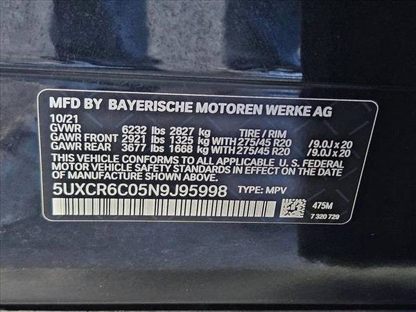 * Premium Package * Climate Comfort Package * Parking Assistance Package * Panoramic Roof * Wheels: 20" X 9" V-Spoke * Black Sapphire Metallic * 4-Zone Automatic Climate Control * Navigation System * Heated Front Seats W/Armrests & Steering Wheel * Keyless Start * Rear Spoiler * Heads-Up Display * Anthracite-Brown Poplar Matte Finish Wood Trim * Black; Sensatec Upholstery * Sport SeatsThis vehicle includes a Money-Back Guarantee* and passed our precise inspection process. Best of all the price you see is the price you pay. No haggling. No back and forth. No pressure. And this price is so good it is guaranteed. *Money-Back Guarantee is valid for 5 days or 250 miles, whichever comes first. Subject to certain terms and conditions. See store for details. Some restrictions apply.Check out this pre-owned 2022 BMW X5 we recently got in. This BMW includes: ANTHRACITE-BROWN POPLAR MATTE FINISH WOOD TRIM Woodgrain Interior Trim WHEELS: 20 Tires - Front Performance Aluminum Wheels Tires - Rear Performance BLACK SAPPHIRE METALLIC PREMIUM PACKAGE Remote Engine Start Heads-Up Display 4-ZONE AUTOMATIC CLIMATE CONTROL Multi-Zone A/C A/C Climate Control Rear A/C BLACK, SENSATEC UPHOLSTERY Premium Synthetic Seats PARKING ASSISTANCE PACKAGE Automatic Parking Back-Up Camera HEATED FRONT SEATS W/ARMRESTS Heated Steering Wheel Heated Front Seat(s) CLIMATE COMFORT PACKAGE Multi-Zone A/C Heated Rear Seat(s) A/C Heated Steering Wheel Climate Control Heated Front Seat(s) Rear A/C SPORT SEATS (STD) Bucket Seats *Note - For third party subscriptions or services, please contact the dealer for more information.* The BMW X5 is the benchmark all other SUVs strive to meet. With exceptional power, towing and handling, this SUV can handle anything thrown at it. You appreciate the finer things in life, the vehicle you drive should not be the exception. Style, performance, sophistication is in a class of its own with this stunning BMW X5 xDrive40i. You'll love the feel of AWD in this 2022 BMW X5. It provides a perfect balance of handling power and control in virtually every driving condition.