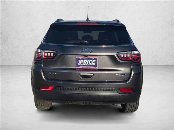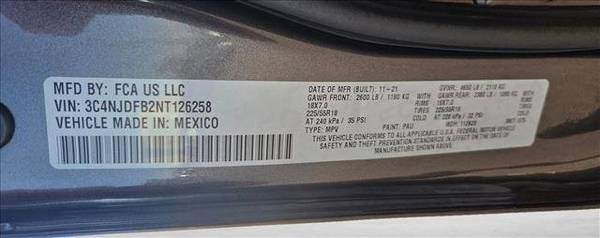 * Leather Seats * Granite Crystal Metallic Clearcoat * Lane Keeping Assist * Keyless Start * Rear Spoiler * Black; Leather Trimmed Bucket Seats * Engine: 2.4L I4 Zero Evap M-Air W/Ess * Front License Plate Bracket * Transmission: 9-Speed 948Te AutomaticThis vehicle includes a Money-Back Guarantee* and passed our precise inspection process. Best of all the price you see is the price you pay. No haggling. No back and forth. No pressure. And this price is so good it is guaranteed. *Money-Back Guarantee is valid for 5 days or 250 miles, whichever comes first. Subject to certain terms and conditions. See store for details. Some restrictions apply.Check out this pre-owned 2022 Jeep Compass we recently got in. In their original incarnation, SUVs were chiefly owned by folks who valued utility above sport. Not anymore! The Jeep Compass Latitude Lux redefines the SUV and makes the perfect all around family companion. Take home this Jeep Compass Latitude Lux, and you will have the power of 4WD. It's a great feature when you need to drive over tricky terrain or through inclement weather. The Compass Latitude Lux has been lightly driven and there is little to no wear and tear on this vehicle. The care taken on this pre-owned vehicle is reflective of the 27,689mi put on this Jeep. Added comfort with contemporary style is the leather interior to heighten the quality and craftsmanship for the Jeep Compass Latitude Lux.