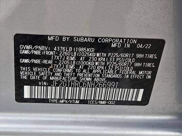 * Exterior & Interior Auto Dimming Hl Mirrors * Aero Crossbar Set * Rear Seatback Protector * Sunshade - Windshield * Lane Keeping Assist * Cargo Net * Keyless Start * Rear Spoiler * Gray W/Yellow Stitching; Startex Upholstery * Ice Silver Metallic * Standard ModelThis vehicle includes a Money-Back Guarantee* and passed our precise inspection process. Best of all the price you see is the price you pay. No haggling. No back and forth. No pressure. And this price is so good it is guaranteed. *Money-Back Guarantee is valid for 5 days or 250 miles, whichever comes first. Subject to certain terms and conditions. See store for details. Some restrictions apply.2022SubaruCrosstrek If you're in the market for an incredible SUV -- and value on-the-road comfort and manners more than ultimate off-road prowess or tow capacity -- you'll definitely want to check out this Subaru Crosstrek Sport. The greater your fuel-efficiency, the less your carbon footprint. And with exceptional MPGs, this Subaru Crosstrek treads ever so lightly on Mother Earth. Enhanced performance, a refined interior and exceptional fuel economy are just a few of the things you'll enjoy about this all-wheel drive vehicle. It's not a misprint. And the odometer isn't broken. This is a very low mileage Subaru Crosstrek. A rare find these days.