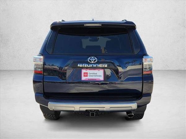 * Kinetic Dynamic Suspension System (Kdss) * Moonroof Package * Trail Running Boards (Tms) * Sun/Moonroof * All-Weather Floor Liners/Cargo Tray (Tms) * Roof Rack Cross Bars (Tms) * Exhaust Tip (Tms) * Keyless Start * Rear Spoiler * 50 State Emissions * Black/Graphite; Softex Seat Trim * Nautical Blue Metallic * Off Road Package * Off Road Premium Package W/Softex * Preferred Owner'S Portfolio (Tms) * Keep It Wild SavingsThis vehicle includes a Money-Back Guarantee* and passed our precise inspection process. Best of all the price you see is the price you pay. No haggling. No back and forth. No pressure. And this price is so good it is guaranteed. *Money-Back Guarantee is valid for 5 days or 250 miles, whichever comes first. Subject to certain terms and conditions. See store for details. Some restrictions apply.Looking for a clean, well-cared for 2022 Toyota 4Runner? This is it. The Toyota 4Runner TRD Off Road Premium offers a fair amount of utility thanks to its advanced features and unique styling. It's also quite sporty, and injects an ample amount of handling chutzpah into the ridin'-high body of a family-friendly SUV. You deserve a vehicle designed for higher expectations. This Toyota 4Runner TRD Off Road Premium delivers with a luxurious, well-appointed interior and world-class engineering. With 4WD, you can take this 2022 Toyota 4Runner TRD Off Road Premium to places roads don't go. It's all about the adventure and getting the most enjoyment out of your new ride. Low, low mileage coupled with an exacting maintenance program make this vehicle a rare find.