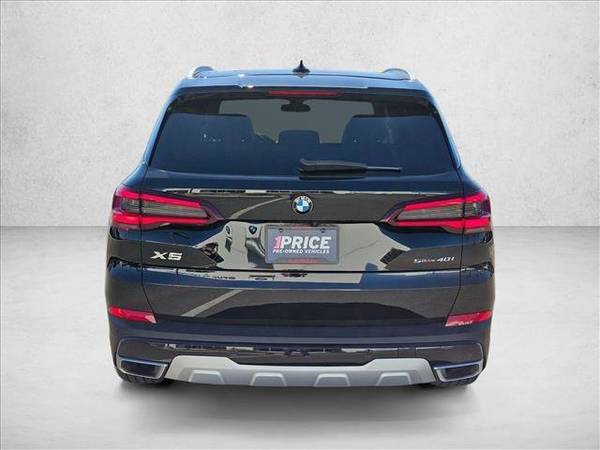 The following items have been reconditioned on this vehicle: new brakes and new tires! * Harman/Kardon Surround Sound System * Parking Assistance Package * 4-Zone Automatic Climate Control * Panoramic Roof * Wheels: 20" X 9" V-Spoke * Wireless Charging * Navigation System * Rear Manual Side Window Shades * Keyless Start * Rear Spoiler * Anthracite-Brown Poplar Matte Finish Wood Trim * Black; Sensafin Upholstery * Jet Black * Sport Seats * Driver Lumbar Support OnlyThis vehicle includes a Money-Back Guarantee* and passed our precise inspection process. Best of all the price you see is the price you pay. No haggling. No back and forth. No pressure. And this price is so good it is guaranteed.2023BMWX5 This BMW includes: HARMAN/KARDON SURROUND SOUND SYSTEMPremium Sound System REAR MANUAL SIDE WINDOW SHADESJET BLACK4-ZONE AUTOMATIC CLIMATE CONTROLMulti-Zone A/C A/C Climate Control Rear A/C ANTHRACITE-BROWN POPLAR MATTE FINISH WOOD TRIMWoodgrain Interior Trim BLACK, SENSAFIN UPHOLSTERYPremium Synthetic Seats SPORT SEATS (STD)Bucket Seats DRIVER LUMBAR SUPPORT ONLY (DISC)Driver Adjustable Lumbar WHEELS: 20"Tires - Front Performance Aluminum Wheels Tires - Rear Performance PARKING ASSISTANCE PACKAGEAutomatic Parking Back-Up Camera Aerial View Display System WIRELESS CHARGING*Note - For third party subscriptions or services, please contact the dealer for more information.*With this exceptional SUV, you'll get "sport," "utility," and comfort. This BMW X5 sDrive40i is for the discerning driver who demands the utmost of his vehicle.Based on the superb condition of this vehicle, along with the options and color, this BMW X5 sDrive40i is sure to sell fast.*Money-Back Guarantee is valid for 5 days or 250 miles, whichever comes first. Subject to certain terms and conditions. See store for details. Some restrictions apply.