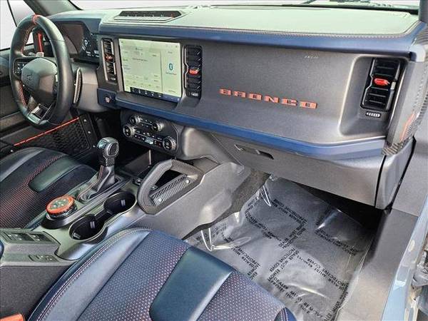 * Equipment Group 374A Lux Package * Blue W/Black Onyx; Leather-Trimmed/Vinyl Bucket Seats W/Blue/Black * Wheels: 17" Dark Carbonized Gray Alloy Painted * Interior Carbon Fiber Pack 6 * Azure Gray Metallic Tri-Coat * Dual Moonroof * Leather Seats * Navigation System * Front Row Top Panels & Door Storage Bags * Engine Block Heater * Lane Keeping Assist * Keyless Start * Engine: 3.0L Ecoboost V6 * Front License Plate Bracket * Hard Top Sound Deadening Headliner * Transmission: 10-Speed AutomaticThis vehicle includes a Money-Back Guarantee* and passed our precise inspection process. Best of all the price you see is the price you pay. No haggling. No back and forth. No pressure. And this price is so good it is guaranteed. *Money-Back Guarantee is valid for 5 days or 250 miles, whichever comes first. Subject to certain terms and conditions. See store for details. Some restrictions apply.This 2023 Ford Bronco Raptor is offered to you for sale by AutoNation Buick GMC West Sahara. This Ford includes: ENGINE BLOCK HEATER FRONT ROW TOP PANELS WHEELS: 17 DARK CARBONIZED GRAY ALLOY PAINTED INTERIOR CARBON FIBER PACK 6 TRANSMISSION: 10-SPEED AUTOMATIC Transmission w/Dual Shift Mode A/T 10-Speed A/T ENGINE: 3.0L ECOBOOST V6 V6 Cylinder Engine Gasoline Fuel Turbocharged AZURE GRAY METALLIC TRI-COAT HARD TOP SOUND DEADENING HEADLINER (DISC) BLUE W/BLACK ONYX, LEATHER-TRIMMED/VINYL BUCKET SEATS W/BLUE/BLACK Power Passenger Seat Power Driver Seat Leather Seats Driver Adjustable Lumbar Premium Synthetic Seats Bucket Seats EQUIPMENT GROUP 374A LUX PACKAGE Navigation System Heated Steering Wheel Universal Garage Door Opener Adaptive Cruise Control Evasion Assist Premium Sound System MP3 Capability *Note - For third party subscriptions or services, please contact the dealer for more information.* The Ford Bronco Raptor offers a fair amount of utility thanks to its advanced features and unique styling. It's also quite sporty, and injects an ample amount of handling chutzpah into the ridin'-high body of a family-friendly SUV. You deserve a vehicle designed for higher expectations. This Ford Bronco Raptor delivers with a luxurious, well-appointed interior and world-class engineering. Handle any terrain with ease thanks to this grippy 4WD. Whether you're on a slick pavement or exploring the back country, you'll be able to do it with confidence. It's not often you find just the vehicle you are looking for AND with low mileage. This is your chance to take home a pre-owned and barely driven Ford Bronco. Where do you need to go today? Just punch it into the on-board navigation system and hit the road. Marked by excellent quality and features with unmistakable refined leather interior that added value and class to the Ford Bronco Raptor.