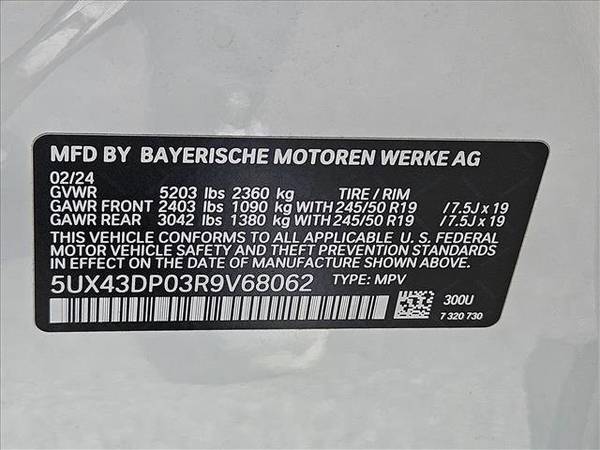 * Convenience Package * Panoramic Moonroof * Parking Assistance Package * Panoramic Roof * Heated Front Seats * Navigation System * Remote Engine Start * Space-Saver Spare * Keyless Start * Rear Spoiler * Alpine White * Black; Perforated Sensatec Upholstery * Wheels: 19" X 7.5" Y-Spoke (Style 693)This vehicle includes a Money-Back Guarantee* and passed our precise inspection process. Best of all the price you see is the price you pay. No haggling. No back and forth. No pressure. And this price is so good it is guaranteed.This 2024 BMW X3 sDrive30i is offered to you for sale by AutoNation USA Henderson. This BMW includes: CONVENIENCE PACKAGE Keyless Start Panoramic Roof Hands-Free Liftgate Generic Sun/Moonroof Power Door Locks Keyless Entry Passenger Adjustable Lumbar Sun/Moonroof Driver Adjustable Lumbar Remote Trunk Release PANORAMIC MOONROOF Panoramic Roof Generic Sun/Moonroof Sun/Moonroof REMOTE ENGINE START Remote Engine Start WHEELS: 19 Aluminum Wheels HEATED FRONT SEATS Heated Front Seat(s) PARKING ASSISTANCE PACKAGE Automatic Parking Back-Up Camera Aerial View Display System BLACK, PERFORATED SENSATEC UPHOLSTERY Premium Synthetic Seats *Note - For third party subscriptions or services, please contact the dealer for more information.* With this exceptional SUV, you'll get sport, utility, and comfort. Put performance, safety, beauty, sophistication and all the right amenities into a car, and here it is! Now you can own luxury without the luxury price tag! The 2024 BMW exterior is finished in a breathtaking Alpine White, while being complemented by such a gorgeous Black interior. This color combination is stunning and absolutely beautiful!*Money-Back Guarantee is valid for 5 days or 250 miles, whichever comes first. Subject to certain terms and conditions. See store for details. Some restrictions apply.