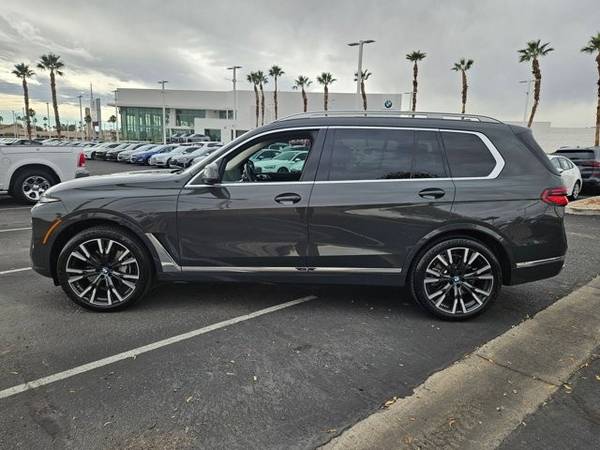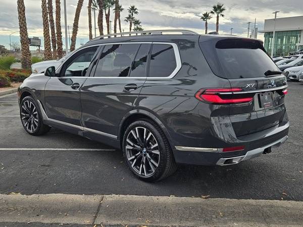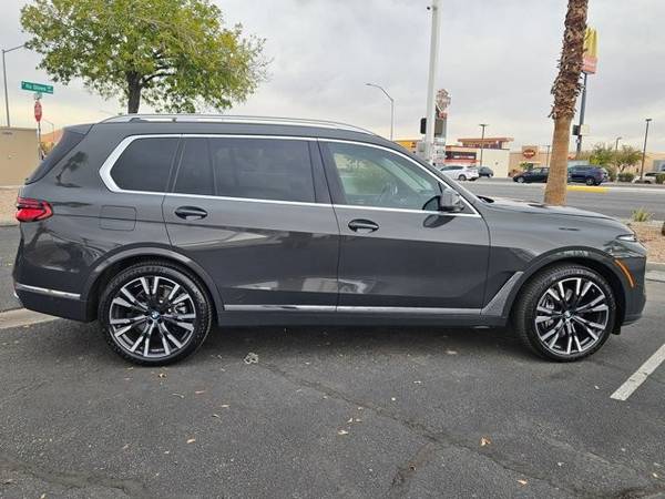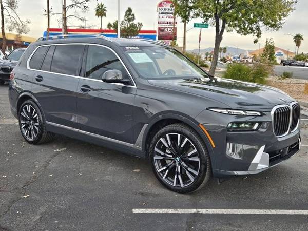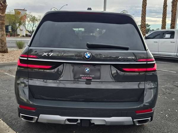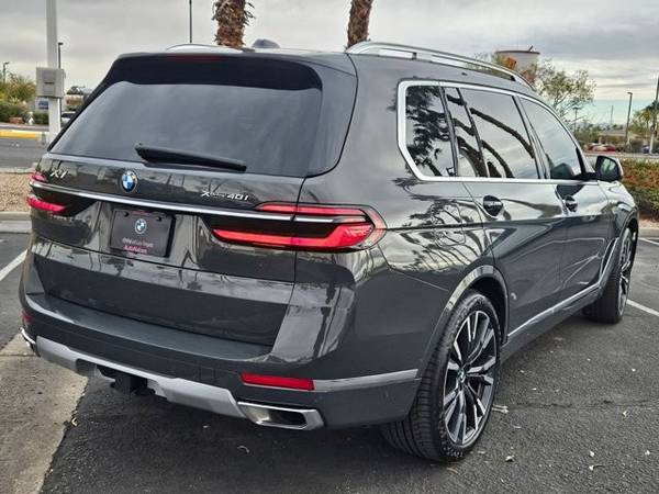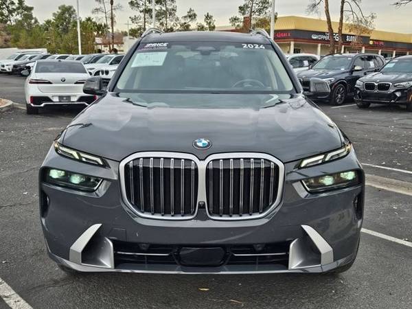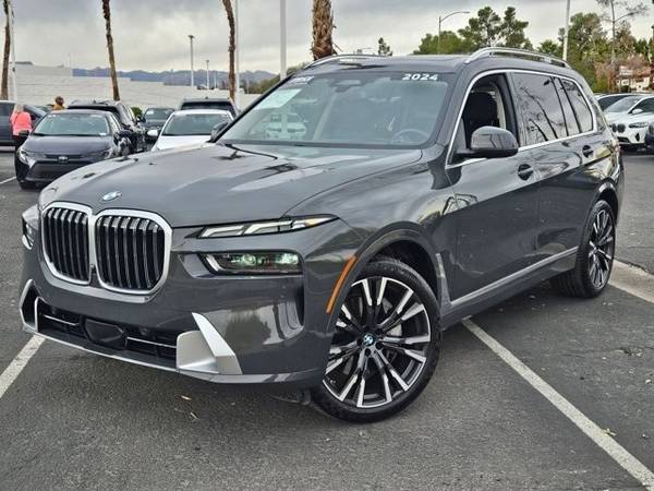 * Driving Assistance Professional Package * Dravit Grey Metallic * Wheels: 22" X 9.5" Fr & 22" X 10.5" Rr V-Spoke (1Sl) * Parking Assistance Package * 5-Zone Automatic Climate Control * Glass Controls * Panoramic Roof * Trailer Hitch * Navigation System * 3rd Row Seat * Lane Keeping Assist * Keyless Start * Rear Spoiler * Heads-Up Display * Anthracite-Brown Poplar Matte Finish Wood Trim * Black; Sensafin UpholsteryThis vehicle includes a Money-Back Guarantee* and passed our precise inspection process. Best of all the price you see is the price you pay. No haggling. No back and forth. No pressure. And this price is so good it is guaranteed.You can find this 2024 BMW X7 xDrive40i and many others like it at BMW of Las Vegas. This BMW includes: DRAVIT GREY METALLIC DRIVING ASSISTANCE PROFESSIONAL PACKAGE Lane Departure Warning Automatic Parking Lane Keeping Assist Cruise Control Steering Assist Adaptive Cruise Control Driver Monitoring Evasion Assist Blind Spot Monitor Cruise Control Cross-Traffic Alert Front Collision Mitigation PARKING ASSISTANCE PACKAGE Automatic Parking Back-Up Camera Aerial View Display System WHEELS: 22" Chrome Wheels Tires - Front Performance Aluminum Wheels Steel Wheels Tires - Rear Performance TRAILER HITCH Tow Hitch ANTHRACITE-BROWN POPLAR MATTE FINISH WOOD TRIM Woodgrain Interior Trim BLACK, SENSAFIN UPHOLSTERY Vinyl Seats Cloth Seats Leather Seats Premium Synthetic Seats 5-ZONE AUTOMATIC CLIMATE CONTROL Multi-Zone A/C A/C Climate Control Rear A/C GLASS CONTROLS *Note - For third party subscriptions or services, please contact the dealer for more information.* This BMW X7 xDrive40i has a tough exterior complemented by a well-designed interior that offers all the comforts you crave. Today's luxury vehicle is not just about opulence. It's about a perfect balance of performance, comfort and attention to detail. This 2024 BMW X7 xDrive40i is the perfect example of the modern luxury. No matter the weather conditions or terrain, this Dravit Grey Metallic AWD BMW X7 xDrive40i handles with an elegant confidence. Fine interior appointments complement this vehicle's unprecedented performance. Intricately stitched leather and ergonomic design seats are among the details in which test drivers say that BMW X7 xDrive40i is in a league of its own*Money-Back Guarantee is valid for 5 days or 250 miles, whichever comes first. Subject to certain terms and conditions. See store for details. Some restrictions apply.