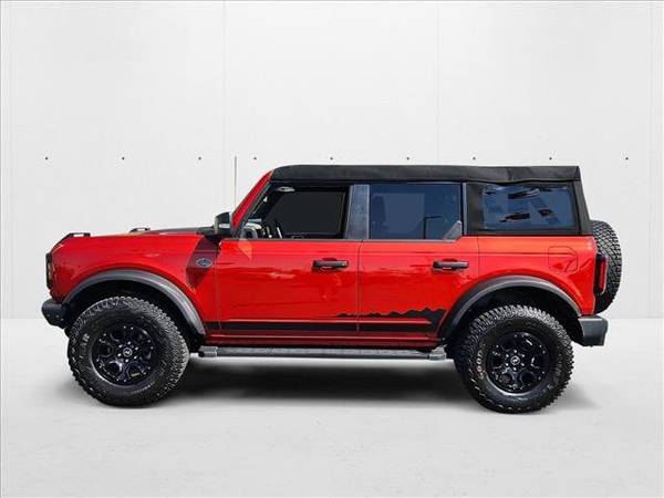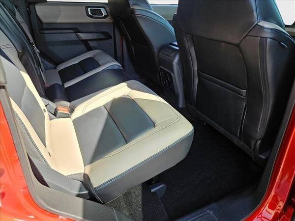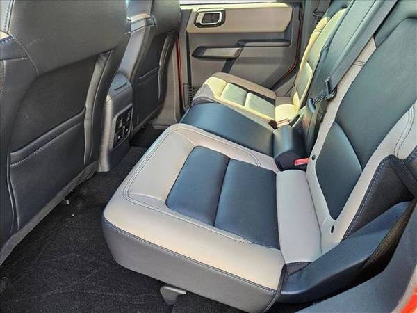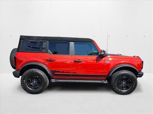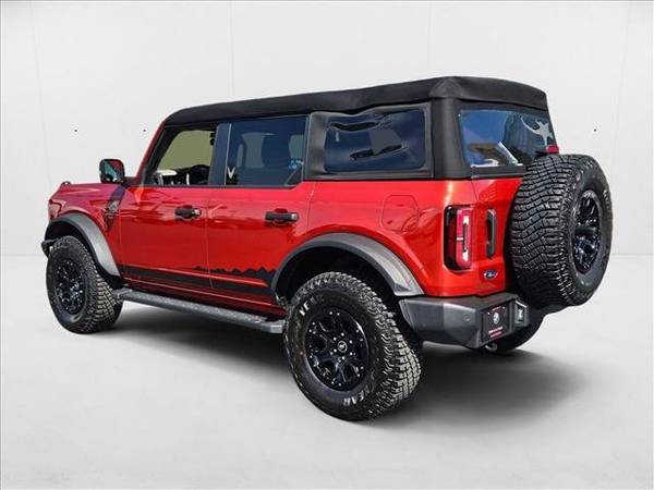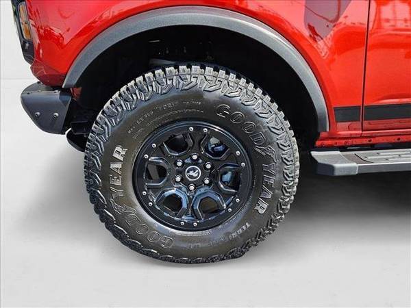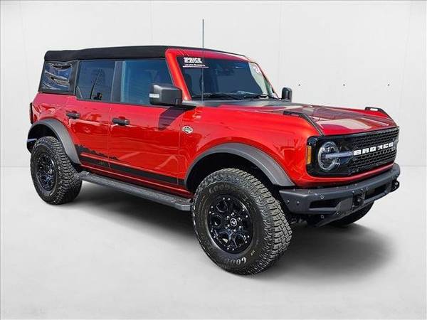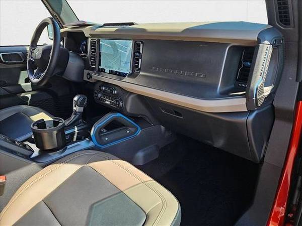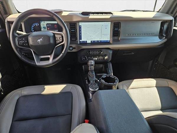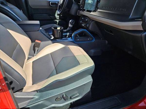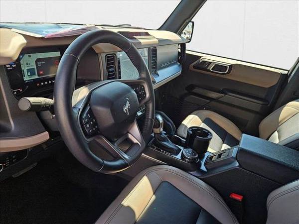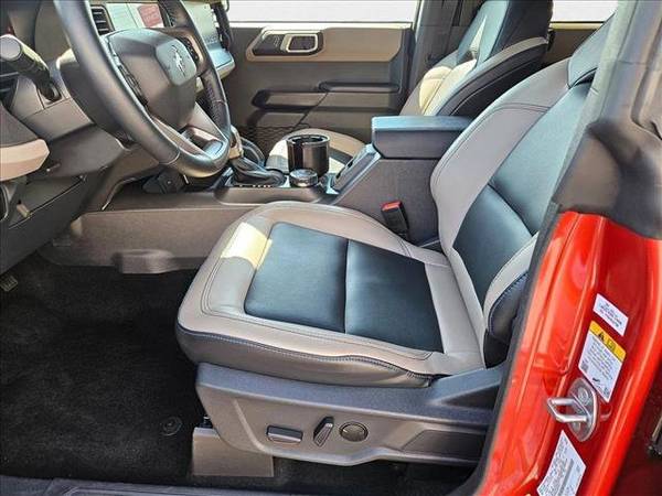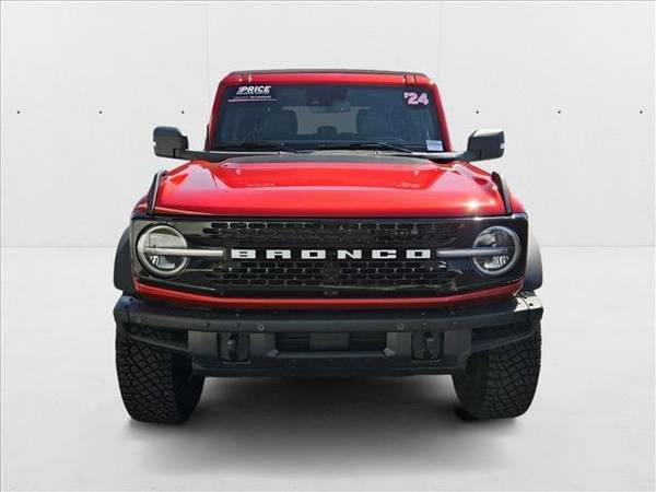 * Equipment Group 354A High/Lux Package * Wildtrak Bodyside Graphic * Leather Seats * Hot Pepper Red Metallic Tinted Clearcoat * Navigation System * Door Storage Bags * Paint Protection Film * Front & Rear Floor Liners * Lane Keeping Assist * Keyless Start * Convertible Soft Top * Engine: 2.7L Ecoboost V6 * Front License Plate Bracket * Medium Sandstone W/Black; Heated Leather-Trimmed/Vinyl Bucket Seats * Transmission: 10-Speed AutomaticThis vehicle includes a Money-Back Guarantee* and passed our precise inspection process. Best of all the price you see is the price you pay. No haggling. No back and forth. No pressure. And this price is so good it is guaranteed.Check out this pre-owned 2024 Ford Bronco we recently got in. This Ford includes: ENGINE: 2.7L ECOBOOST V6 4-Wheel Disc Brakes Traction Control V6 Cylinder Engine ABS Gasoline Fuel Turbocharged Stability Control *Note - For third party subscriptions or services, please contact the dealer for more information.* Gone are the days of SUVs being the size of a tank and handling like one. This Ford Bronco is a perfect example of how SUVs have evolved into vehicles that are as refined as they are rugged. Indulge yourself with one of the most highly crafted, most luxurious automobiles available today. When Ford created this vehicle with 4 wheel drive, they immediately enhanced the performance ability. Easily switch between two and four wheel drive to take advantage of the improved traction.*Money-Back Guarantee is valid for 5 days or 250 miles, whichever comes first. Subject to certain terms and conditions. See store for details. Some restrictions apply.