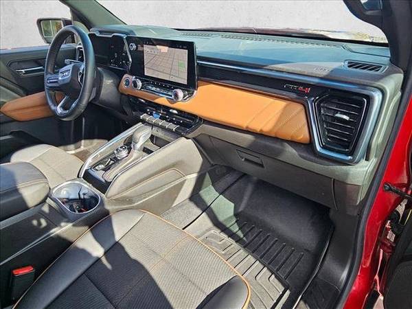 * Sunroof; Power Inner Sliding Glass * Technology Package * Wheels; 20" X 9" (50.8 Cm X 22.9 Cm) Full Gloss Dark Grey Machined Finish Aluminum * Prograde Trailering System * Volcanic Red Tintcoat * Sun/Moonroof * Canyon Safety Plus Package * Lpo; Black Badges * Alternator; 220 Amps * Lane Keeping Assist * Keyless Start * License Plate Kit; Front * 11.3" Diagonal Premium Gmc Infotainment System * Adaptive Cruise Control * At4 Preferred Equipment Group * Blind Zone Steering Assist With Trailering * Emissions Override; Federal * Emissions; California State Requirements * Engine; Turbomax * Hd Surround Vision * Jet Black/Timber; Cloth/Coretec Seat Trim * Rear Axle; 3.42 Ratio * Rear Cross Traffic Braking * Rear Park Assist; Ultrasonic * Rear Pedestrian Alert * Seat; Front Bucket * Tire; Spare 275/60R20 At Blackwall * Tires; 275/60R20Sl At Blackwall * Trailer Brake Controller; Integrated * Trailering App; System * Trailering Package * Transmission; 8-Speed Automatic; 8L80 * Wheel; Spare 20" X 9" (50.8 Cm X 22.9 Cm) Aluminum Full-Size SpareThis vehicle includes a Money-Back Guarantee* and passed our precise inspection process. Best of all the price you see is the price you pay. No haggling. No back and forth. No pressure. And this price is so good it is guaranteed. *Money-Back Guarantee is valid for 5 days or 250 miles, whichever comes first. Subject to certain terms and conditions. See store for details. Some restrictions apply.Check out this pre-owned 2024 GMC Canyon we recently got in. This GMC includes: ENGINE, TURBOMAX 4 Cylinder Engine Gasoline Fuel Turbocharged *Note - For third party subscriptions or services, please contact the dealer for more information.* Sophistication & understated luxury comes standard on this GMC Canyon 4WD AT4. Well-known by many, the Canyon has become a household name in the realm of quality and prestige. No matter the terrain or weather, you'll drive at ease in this 4WD-equipped vehicle. With exceptional safety features and superb handling, this 4WD was engineered with excellence in mind. The GMC Canyon 4WD AT4 will provide you with everything you have always wanted in a car -- Quality, Reliability, and Character.