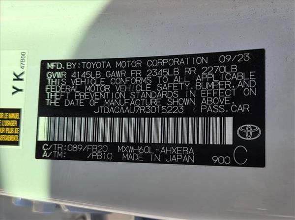 * Special Color * Carpet Floor Mats/Cargo Mat (Tms) * Body Side Moldings (Tms) * Door Edge Guards (Tms) * Lane Keeping Assist * Rear Bumper Applique (Tms) * Keyless Start * First Aid Kit (Tms) * 50 State Federal Emissions * Gradient Black; Fabric Seat Trim * Wind Chill PearlThis vehicle includes a Money-Back Guarantee* and passed our precise inspection process. Best of all the price you see is the price you pay. No haggling. No back and forth. No pressure. And this price is so good it is guaranteed. *Money-Back Guarantee is valid for 5 days or 250 miles, whichever comes first. Subject to certain terms and conditions. See store for details. Some restrictions apply.You can find this 2024 Toyota Prius LE and many others like it at AutoNation Toyota Las Vegas. This Toyota includes: CARPET FLOOR MATS/CARGO MAT (TMS) (PPO) Floor Mats SPECIAL COLOR BODY SIDE MOLDINGS (TMS) (PPO) GRADIENT BLACK, FABRIC SEAT TRIM Cloth Seats REAR BUMPER APPLIQUE (TMS) (PPO) FIRST AID KIT (TMS) (PPO) WIND CHILL PEARL *Note - For third party subscriptions or services, please contact the dealer for more information.* Why spend more money than you have to? This Toyota Prius will help you keep the extra money you'd normally spend on gas. Just what you've been looking for. With quality in mind, this vehicle is the perfect addition to take home. Beautiful color combination with Wind Chill Pearl exterior over Gradient Black interior making this the one to own!