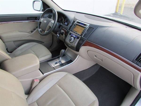 The 2010 Hyundai Veracruz Limited offers a powerful performance with its 3.8L V6 engine generating 260hp and 257ft. lbs. of torque. This well-equipped SUV comes with a range of factory default features designed to enhance comfort, convenience, and safety for both the driver and passengers. Inside, the Veracruz Limited boasts luxurious leather seating surfaces that provide a sophisticated touch to the cabin. The driver's seat is power-adjustable, allowing for personalized comfort during long journeys. The second-row seats offer ample legroom and can be folded down to expand cargo space when needed. The vehicle is equipped with a premium Infinity sound system that delivers high-quality audio throughout the interior. The 6-disc CD changer, MP3 playback capability, and auxiliary input ensure a variety of entertainment options for occupants. Safety is a top priority in the Veracruz Limited, featuring standard electronic stability control, traction control, and anti-lock brakes to provide a secure driving experience. Front, side, and curtain airbags offer additional protection in the event of a collision.