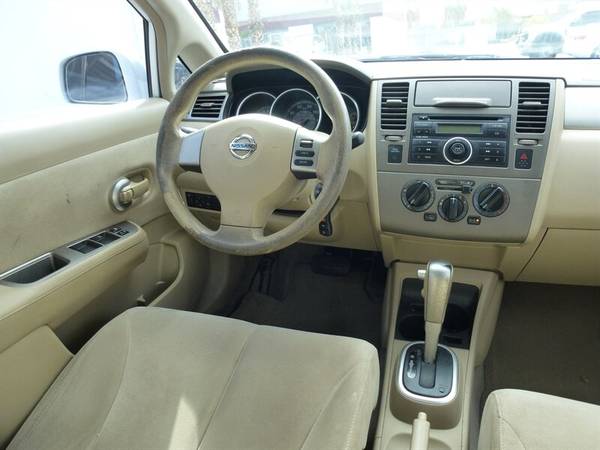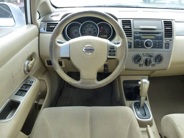 This zippy 2009 Nissan Versa is a joy to drive with its efficient 1.8L I4 engine delivering 122hp and 127ft. lbs. of torque! Step inside and you'll find a host of fantastic factory default features to make your driving experience a breeze. Enjoy the convenience of power windows and locks, air conditioning to keep you cool on hot days, and an AM/FM stereo with CD player for your favorite tunes. Plus, the Versa comes equipped with front and side airbags for added safety and peace of mind. Get ready to hit the road with style and confidence in this versatile and fun-to-drive compact car!