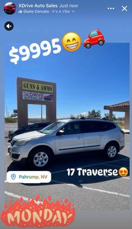 Super Clean Traverse with third row seating super roomy for the while family, ice cold ac, cd, pwr everything, V6 Auto with plenty of power, a must see and drive to appreciateπ with as little as $1499 Down drive off today with your good or bad creditβ β β πππ Call or Text Alexis at 702-4655646 we are located in the beautiful town of Pahrump NvποΈπ΅