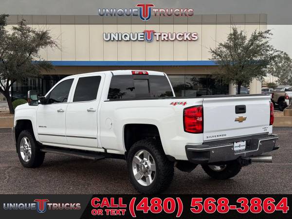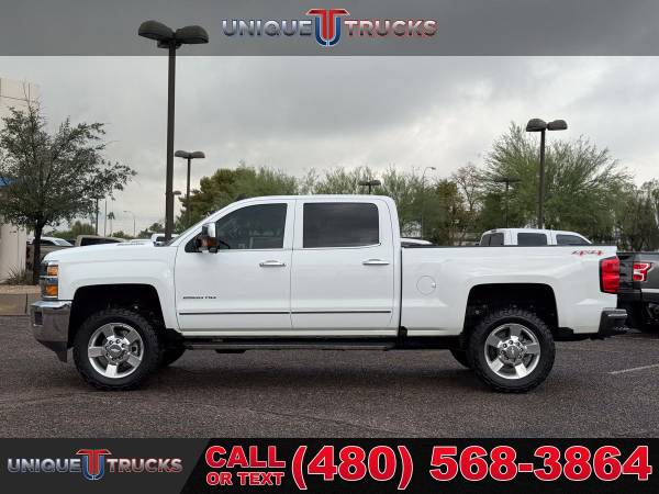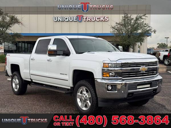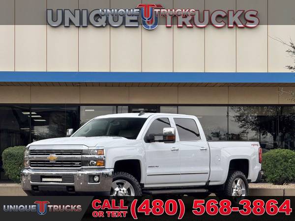 The Summit White exterior on this one-owner 2016 Chevrolet Silverado 2500HD LTZ Crew Cab 4x4 gives the truck a clean and sharp look from the start. The bright chrome accents add a smooth touch of shine, making this Silverado stand out everywhere it goes. The body lines look strong and clean, and the overall look of this truck shows how well it has been cared for.Inside, the Cocoa Dune leather interior brings a warm and upscale feel. The seats are soft, supportive, and laid out in a way that makes long drives easy. With the front full-feature leather bucket seats, you get 10-way power adjusters, heated and vented cushions, memory settings, and adjustable headrests. The center console gives you added storage, power cord management, and wireless charging for even more convenience.Power comes from the 6.6-liter Duramax V8 turbo diesel engine paired with the smooth Allison 1000 6-speed automatic transmission. This setup is known for strong pulling power, clean shifts, and steady performance whether you’re towing or cruising. The tow/haul mode, electronic grade braking, and the added exhaust brake give you even more control when pulling heavy loads.This Silverado comes with the LTZ Preferred Equipment Group and the LTZ Plus Package, giving you a long list of added features. The Duramax Plus Package includes the diesel engine, Allison transmission, 3.73 rear axle ratio, engine block heater, exhaust brake, and the Chevrolet MyLink 8" color touchscreen with built-in navigation. Everything is set up for power, control, and easy use on the road or at the job site.The truck sits on 20" polished aluminum 5-spoke wheels paired with LT265/60R20 all-terrain tires. These give the truck a bold stance while offering great grip and a smooth ride. The cargo box LED lighting helps you see everything in the bed at night, and the rear under-seat storage bin adds more room inside for gear and tools.This Silverado also comes ready for towing with the integrated trailer brake controller, trailering wiring provisions for fifth-wheel or gooseneck setups, and the heated power-folding chrome trailering mirrors with memory, turn signals, auxiliary lamps, and extra visibility. Everything you need for towing is already built in.Inside, the truck offers dual-zone climate control, power adjustable pedals, a Bose 6-speaker sound system, wireless charging, rear 60/40 folding seats, and a reconfigurable floor console. Every part of the interior is designed to keep you comfortable, organized, and connected during every trip.The truck also offers vented and heated front seats, remote start, and a smooth layout that makes the cabin simple to use. The memory functions for the driver’s seat and mirrors add even more convenience, especially if more than one person drives the truck.This one-owner 2016 Chevrolet Silverado 2500HD LTZ is the cleanest, nicest, most eye-catching diesel you’ll see. It’s fully serviced, ready to go, and ready to turn heads everywhere it rolls. From the power to the comfort to the look, this truck offers everything you want in a heavy-duty diesel.At Unique Trucks, the price you see is the price you pay—no hidden markups and no addendums. We also offer our no-obligation delivery service, where the truck gets delivered right to your doorstep. Test drive it from home, make your best deal over the phone, and if you don’t like it, you don’t buy it. We love trade-ins, and we always encourage you to come in and check out what we have. ___________________________________________________________________________________ 2016* 2017* 2018* 2019* CHEVROLET* CHEVY* SILVERADO* 2500HD* LTZ* 2500* DIESEL TRUCKS* CREW CAB* DURAMAX* DIESEL* ALLISON TRANSMISSION* LIFTED TRUCKS* CHEVY TRUCKS* DIESEL TRUCKS* LOW MILES* LOW MILEAGE* RELIABLE* ONLY*
