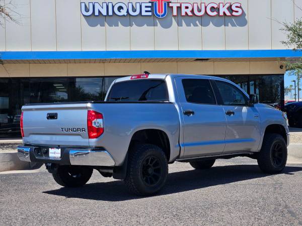 This 2020 Toyota Tundra CrewMax SR5 4x4 is one of the cleanest lifted trucks you’ll find, finished in Silver Sky Metallic with bright chrome accents that catch the light from every angle. Inside, it’s paired with a Black fabric cloth interior that keeps things sharp and practical, making this truck both eye-catching and comfortable.The stance on this Tundra sets it apart, thanks to a custom level kit paired with gloss black Vision wheels and fresh all-terrain tires. This combo not only gives it the lifted truck look everyone wants, but also adds the traction and toughness to handle dirt roads, gravel, or the open highway with confidence.Powered by the legendary 5.7L i-FORCE V8 engine, this Tundra delivers 381 horsepower and 401 lb.-ft. of torque. Matched with a 6-speed automatic transmission, this truck is ready for towing, hauling, and long-distance cruising without hesitation. Toyota’s 4WDemand part-time 4x4 system with Active Traction Control and Automatic Limited-Slip Differential ensures you’re in control no matter the conditions.The outside is loaded with details like halogen headlights with LED accents, chrome 4x4 and Tundra badging, fog lights, chrome bumpers, a gray grille with chrome surround, and front tow hooks. It also comes with a tonneau cover to keep your cargo safe and secure in the short 5.5-ft. bed.Inside, this CrewMax gives you space and comfort with seating for six, a 40/20/40 split front bench seat, and 60/40 split fold-up rear seats. The power rear window slides down for open-air driving, and the air conditioning with dust and pollen filter keeps everyone breathing easy.Tech and convenience features include an integrated backup camera, remote keyless entry, auto-dimming rearview mirror with compass and HomeLink, multiple 12V outlets, and Bluetooth with voice command. You’ll also enjoy Dynamic Radar Cruise Control and Lane Departure Alert right at your fingertips on the steering wheel.Toyota built safety into every inch of this truck. The Star Safety System brings Vehicle Stability Control, Traction Control, ABS with Electronic Brake-force Distribution, Brake Assist, and Smart Stop Technology. Add in eight airbags, LATCH child seat anchors, trailer sway control, and a tire pressure monitor, and you have a truck that’s ready for the road with confidence.When it comes to towing, this Tundra is ready with an integrated trailer brake controller, a trailer monitoring display, and a heavy-duty alternator and battery setup. Whether you’re hauling work equipment, a camper, or weekend toys, this truck is built to get the job done with ease.Toyota’s no-cost maintenance plan with roadside assistance adds even more peace of mind. This Tundra is also fully serviced and ready to hit the road for its next owner, meaning you won’t have to worry about a thing when you drive it home.At Unique Trucks, we make it easy to buy. With our no-obligation delivery service, you can have this Tundra dropped off at your doorstep and take a test drive right from the comfort of your own home. Make your best deal over the phone, and if you don’t like it, you don’t buy it. We love trade-ins and encourage you to come check out our great selection of trucks and lifted trucks today. ____________________________ 2020* 2021* 2019* TOYOTA* TUNDRA* CREWMAX* CREW* MAX* 4X4* FOUR WHEEL DRIVE* 4WD* GAS TRUCKS* LIFTED TUNDRA* LIFTED TRUCKS* CREWMAX* V8* TOYOTA TRUCKS* TOYOTA* LIFTED TRUCKS* LOW MILES* LOW MILEAGE* RELIABLE*