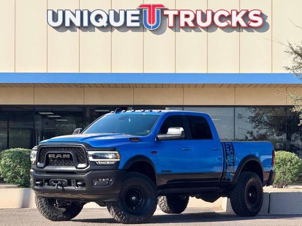 This lifted 2021 Ram 2500 Power Wagon catches attention right away with its Hydro Blue Pearl Coat exterior, a clean look that stands out in any setting. The bright color, paired with the lift and the bold stance, gives this truck a strong presence that is hard to miss and even harder to find in this condition. It’s clean, sharp, and built to turn heads the moment it rolls by.Inside, you get a smooth Black leather interior with a 40/20/40 split bench seat that keeps things simple and comfortable. The layout is easy to use, and the power settings make it easy to find the right position. The cabin has a steady, welcoming feel, made to fit both long drives and daily use with no effort.Power comes from the 6.4-liter HEMI V8, paired with the smooth 8-speed automatic transmission. This setup gives you steady pull, good response, and the strength you want from a Power Wagon. It handles city roads, highways, towing, and off-road trails without hesitation, and it feels ready for whatever you want to put it through.This truck carries important safety and control features like advanced front and side air bags, ParkView rear back-up camera, ParkSense front and rear assist, traction control, hill-start assist, hill descent control, electronic stability control, and the Sentry Key theft system. It also brings features like the 4.10 axle ratio, Tru-Lok front and rear axles, front disconnecting stabilizer bar, front electric winch, Articulink suspension, fuel tank and transfer case skid plates, manual shift-on-the-fly transfer case, performance-tuned shocks, selectable tire-fill alert, and a dampened tailgate.Inside, you get a solid list of tech and comfort features including Uconnect 4 with an 8.4-inch display, Apple CarPlay, Android Auto, Bluetooth voice command, SiriusXM capability, a full media hub with USB and aux ports, a 7-inch color cluster display, an 8-way power driver seat, power windows with one-touch up/down, and remote keyless entry. It’s a setup that keeps everything simple and easy to use.This Power Wagon includes exterior features like 17-inch matte black diamond-cut wheels, LED reflector headlights, and LED tail lamps. The look is clean and strong, and the lighting gives great visibility day or night. The Hydro Blue paint option adds even more appeal to the truck’s presence.The optional equipment brings this truck to another level with the Power Wagon Off-Road Package, rock rails with step pads, leather-trim bench seat, ventilated front seats, heated front and rear seats, dual-zone climate control, rain-sensitive wipers, memory settings, mirror-mounted reverse lamps, heated steering wheel, Alpine sound system with subwoofer, adjustable pedals with memory, remote start, remote tailgate release, a sunroof, and the Uconnect 12-inch screen with navigation, Wi-Fi hotspot, and connected services.You also get the spray-in Mopar bedliner, off-road info pages, SiriusXM 360L, and more storage with the in-floor rear bins. Everything in this truck comes together to make daily use easier and off-road days smoother.This lifted Power Wagon sits on brand new all-terrain tires paired with Method wheels, giving it a clean, aggressive look and great traction. The stance is right, the setup is fresh, and it’s fully serviced and ready for its next owner.At Unique Trucks, the price you see is the price you pay—no hidden markups, no add-ons, no surprises. We also offer our no-obligation delivery service, where the truck is brought right to your doorstep for a test drive from home. Make your best deal over the phone, and if you don’t like it, you don’t buy it. We love trade-ins, and we always encourage you to come in and check this one out in person. ________________________________________________ 2021* 2020* RAM* 2500* POWER WAGON* 2500* LIFTED TRUCKS* RAM TRUCKS* 2500 POWER WAGON* GAS TRUCKS* RAM TRUCKS* HEMI* V8* LOW MILES* LOW MILEAGE* LIFTED DODGE* TRUCKS* 4X4* RELIABLE* ONLY*