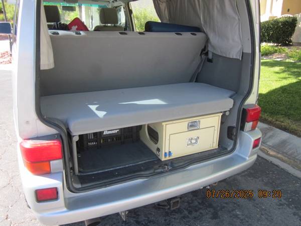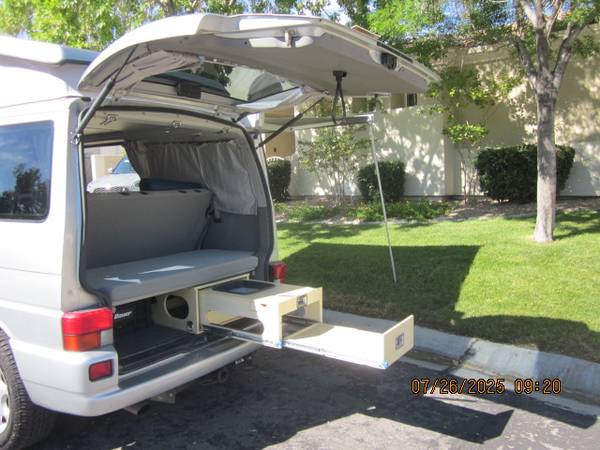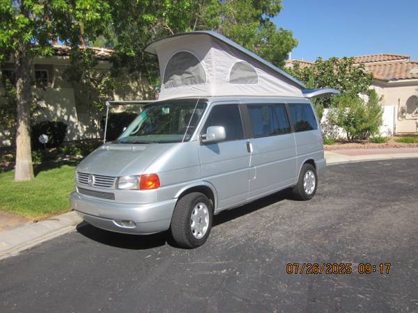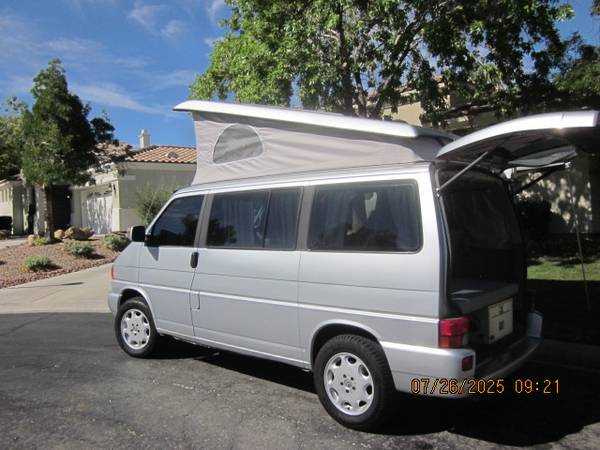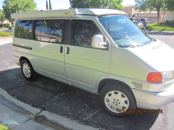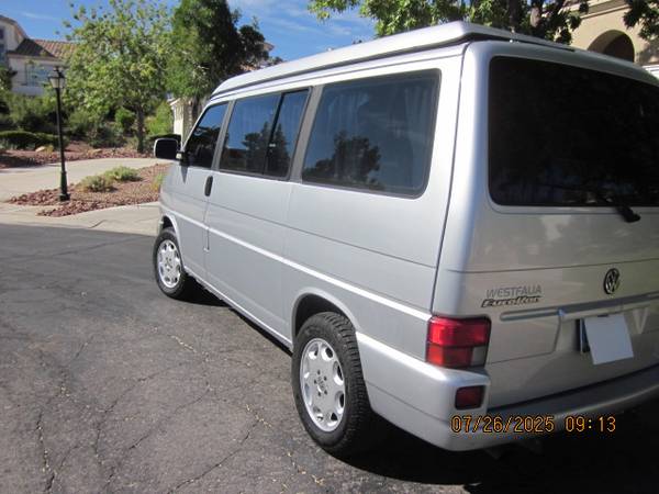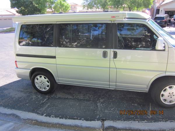 2002 Eurovan Westafalia Weekender with a perfect, rust-free and accident free body. Its a great looker. Lot's of new parts and work done on it. Go-Westy wheels and Fox suspension with newer Yokohama all-terrain tires. High miles but a great runner. The camper has been well cared for before I owned it. Cold AC