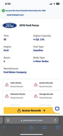 I am selling my 2010 Ford Focus as I have bought a new car and no longer have a need for this one. The car has 186,000 miles on it and runs very well for an older car.