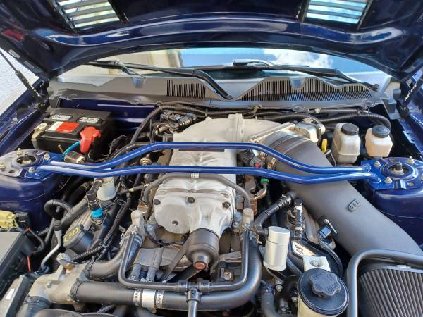 Many Super Snake upgrades. 6 speed manual with short shift. SS fiberglass hood color matched on top and bottom, SS forged 20in wheels with Continental Extreme Contact tires. SS carbon fiber ground effects, shark fin and Gurney flap. VMP 2.3 liter blower with 2014 style dual fan intercooler. VMP Twin Jet 67mm throttle body. Kooks headers and Borla tips. Single white Super Snake stripe. JL Audio Perfect Fit trunk woofer with 13in speaker and matching Amp. Shaker factory touch screen stereo with navigation. Aluminum 1 piece driveshaft. SportComp pillar mounted boost guages. 2014 LED sequential tailights. A solid $20k in upgrades that elevate performance and comfort.