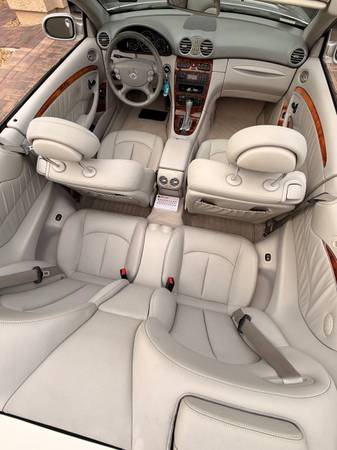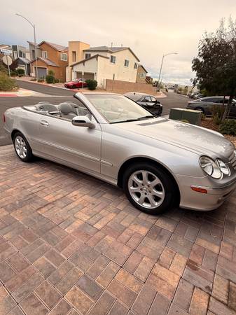 Priced to Sell-at $6500. This 2004 Mercedes-Benz CLK 320 Convertible is a rear-wheel-drive luxury convertible with a 3.2-liter V6 engine producing 215 horsepower. drives and greats strong like a brand new car- oil just changed. All original and everything works including the convertible top. The top has the seem separating from the glue since the glue has dried up(minor) it still opens and closes and is quiet. The vehicle features a 5-speed automatic transmission, a comfortable and stylish interior with features like dual-zone climate control and memory seats, and a range of safety features including ABS and electronic stability control. This is a ORIGINAL OWNER vehicle- garage kept. All services done with Fletcher Jones Mercedes, Imports - Las Vegas.