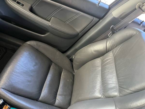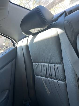 No accidents. Interior gray leather in good condition no rips or holes. Exterior deep blue color is faded in areas. Doors have typical parking dings. No dents anywhere. Tires are in very good condition. A/C works excellent. Moon roof. CD player no longer works.